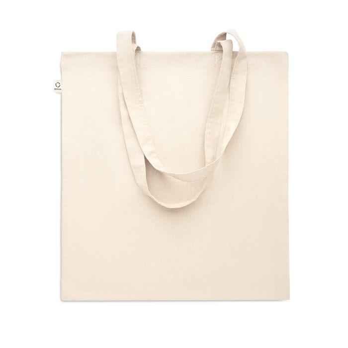 Découvrez notre sac shopping écologique en coton recyclé pré-consommation (70 % coton recyclé et 30 % RPET), idéal pour vos campagnes marketing et événements. Avec ses longues poignées confortables et son grammage de 140 gr/m², il offre une robustesse optimale pour transporter achats ou goodies promotionnels.