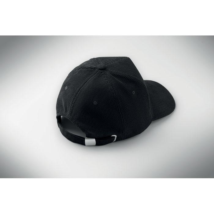 Découvrez notre casquette de baseball à 5 panneaux en velours côtelé de polyester, idéale pour une personnalisation avec votre logo. Avec une fermeture à boucle métallique réglable et un grammage de 220 gr/m², elle offre un confort optimal et une finition premium.