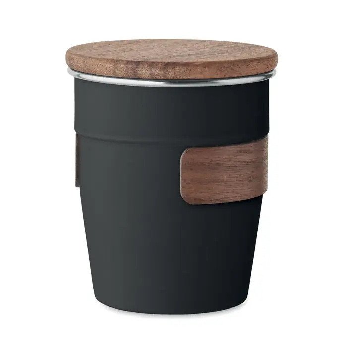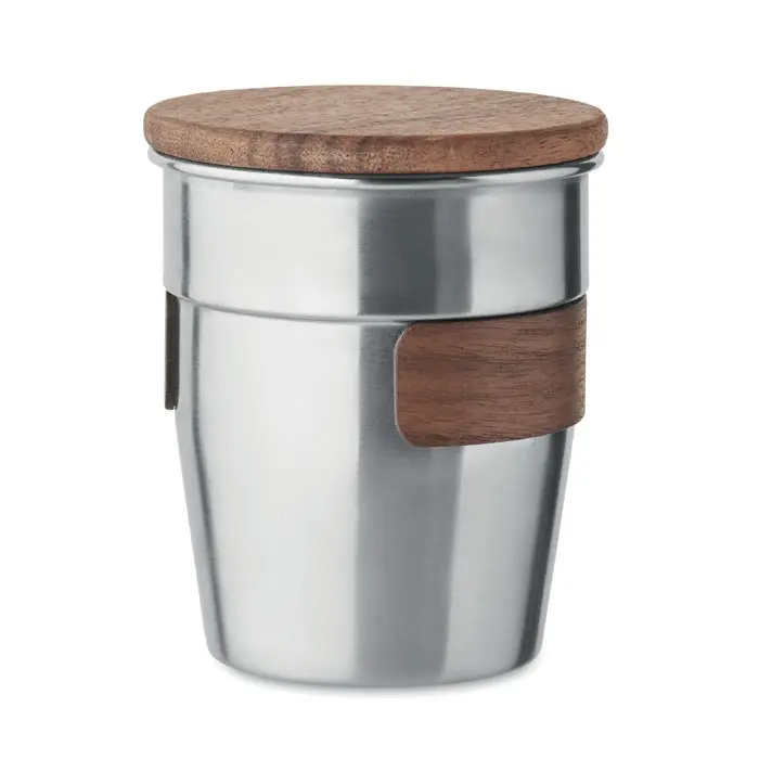 Découvrez ce gobelet simple paroi de 350 ml, idéal pour les entreprises soucieuses de durabilité. Fabriqué à partir de 90 % d'acier inoxydable recyclé et 10 % d'acier inoxydable, il intègre une poignée et un couvercle en noyer pour une prise en main confortable et un design élégant. Ce gobelet se distingue par sa légèreté et sa simplicité, parfait pour une utilisation quotidienne.