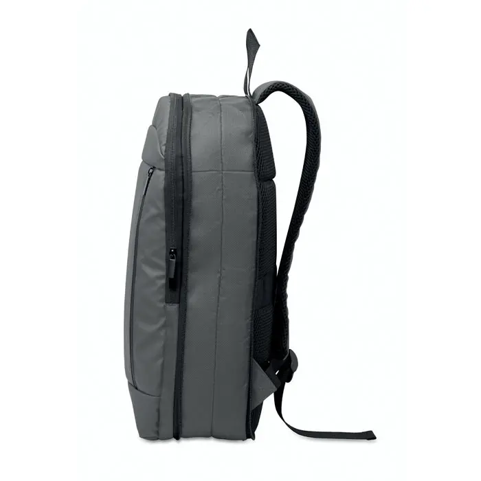 Découvrez ce sac à dos extensible en polyester 600D RPET, idéal pour transporter un ordinateur portable jusqu'à 16 pouces en toute sécurité. Fabriqué à partir de matériaux recyclés, il combine robustesse et engagement écologique, avec un revêtement PU sur le devant pour une meilleure résistance et une doublure en polyester RPET pour une finition soignée.