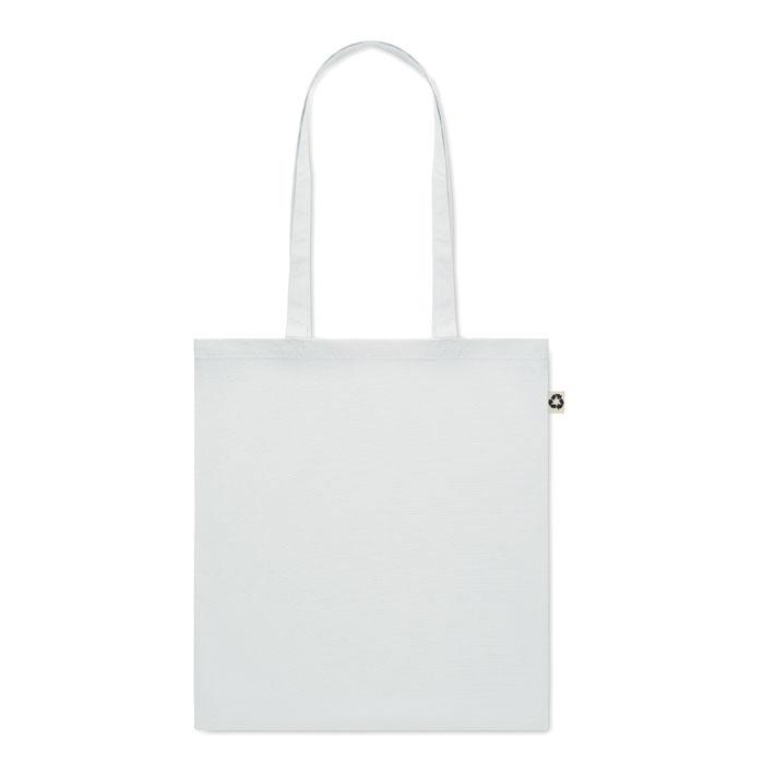 Découvrez notre sac shopping écologique en coton recyclé post-consommation (65 % coton recyclé, 35 % coton ordinaire), avec de longues anses pour un confort optimal. D'une robustesse à 140 g/m², il offre un grand espace d'impression pour votre logo personnalisé.