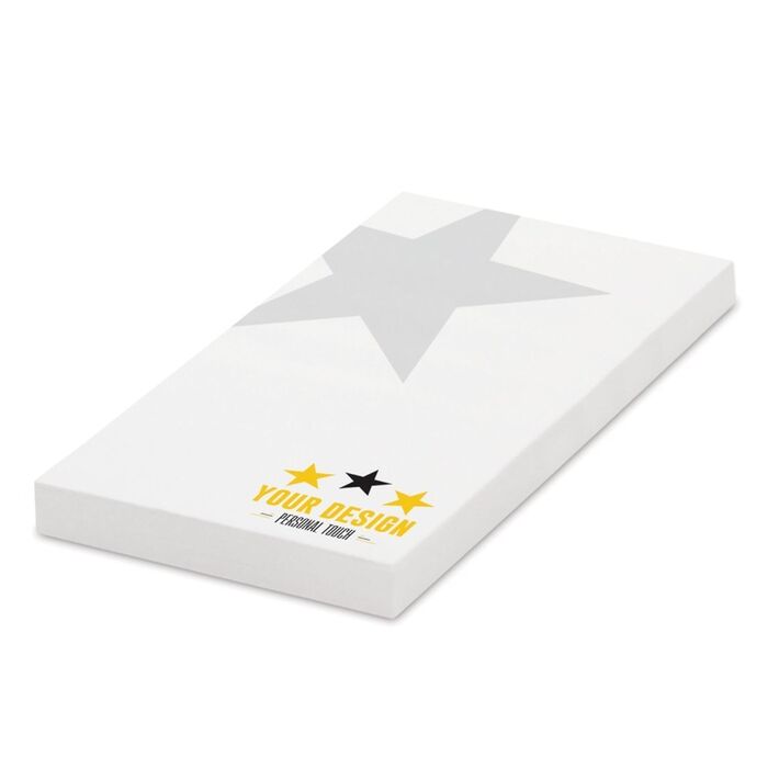 Ons ruim assortiment bedrukte memo notities biedt voor elke gelegenheid de juiste keuze. Rechthoekige memoblokken zijn perfect voor korte notities en zijn verkrijgbaar in verschillende soorten en maten. Deze kunt laten bedrukken met jouw logo of een korte boodschap voor optimale zichtbaarheid.