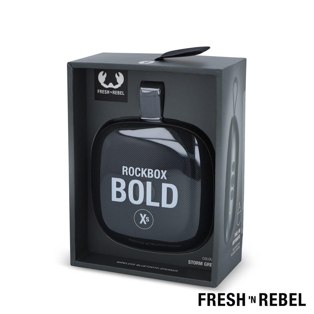 Neem de Fresh 'n Rebel Rockbox Bold XS splashproof TWS speaker overal mee naartoe als ideaal gepersonaliseerd relatiegeschenk. Deze extra kleine en platte speaker past perfect in elke broekzak en bevestig je moeiteloos met de metalen clip aan je tas, sleutels of kleding.