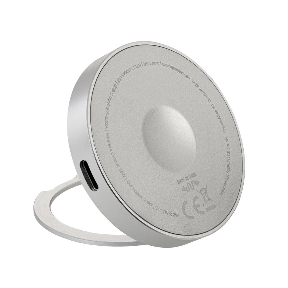 Ontdek deze veelzijdige 3-in-1 magnetische draadloze oplader, perfect als gepersonaliseerd relatiegeschenk voor jouw bedrijf. Je laadt moeiteloos je smartphone, Apple Watch en andere apparaten op tot 15 watt, waar je ook bent: thuis, op kantoor of tijdens events. De magnetische bevestiging zorgt voor een stevige grip op MagSafe-apparaten, en met de uitklapbare ring maak je er een handige telefoonstandaard van. Ideaal om uit te delen aan klanten – het promoot jouw merk dagelijks en verhoogt je zichtbaarheid.