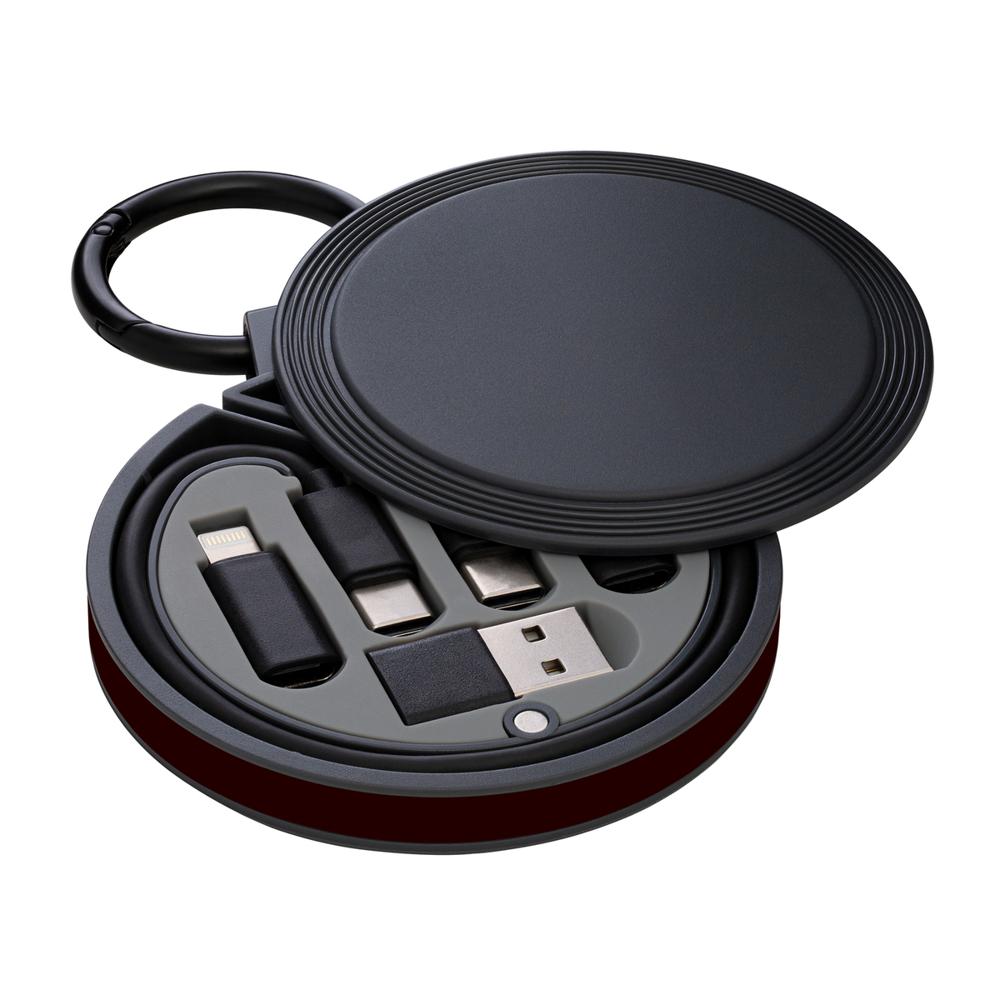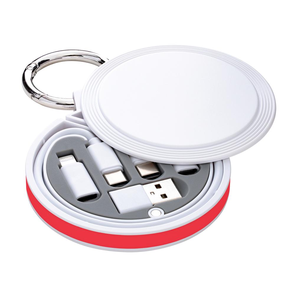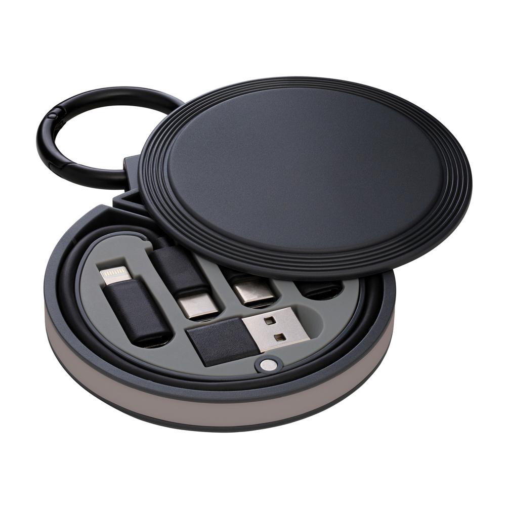 Je lost met de REEVES-myCONVERTICS 6-in-1 laadkabel alle kabelaosjes op, ideaal als gepersonaliseerd relatiegeschenk met jouw logo. Deze compacte set bevat een USB-C naar USB-C oplaadkabel van 48 cm, plus adapters voor Micro-USB, 8-Pin Apple en USB-A. Dankzij de karabijnhaak en splitring van Ø 42 mm hang je hem eenvoudig aan je sleutels of tas – superhandig voor events en dagelijks gebruik.