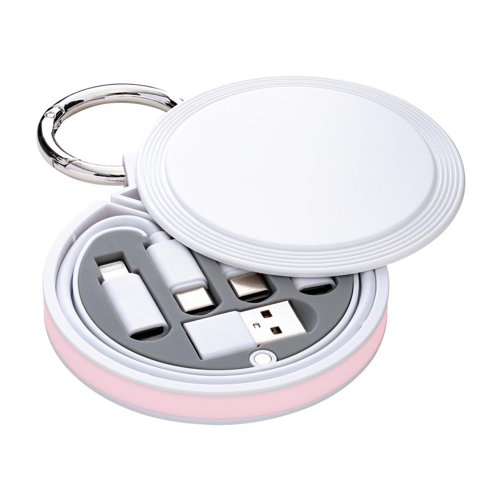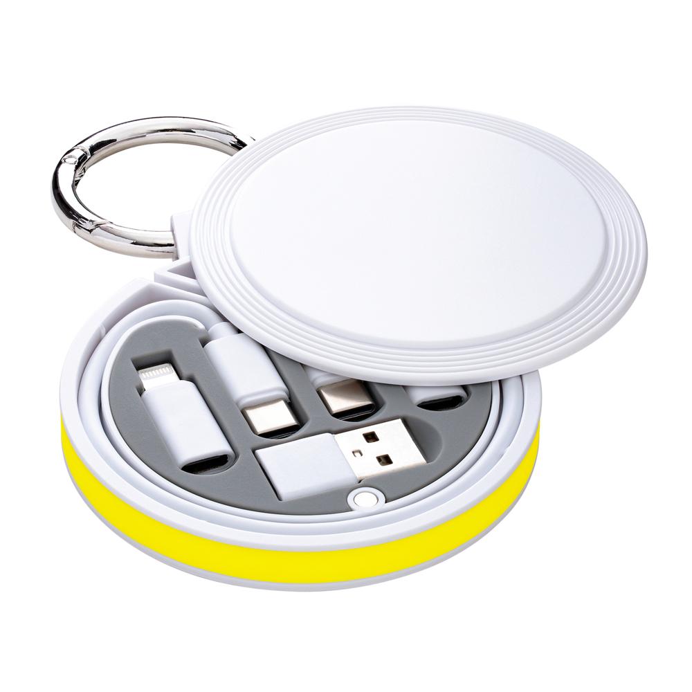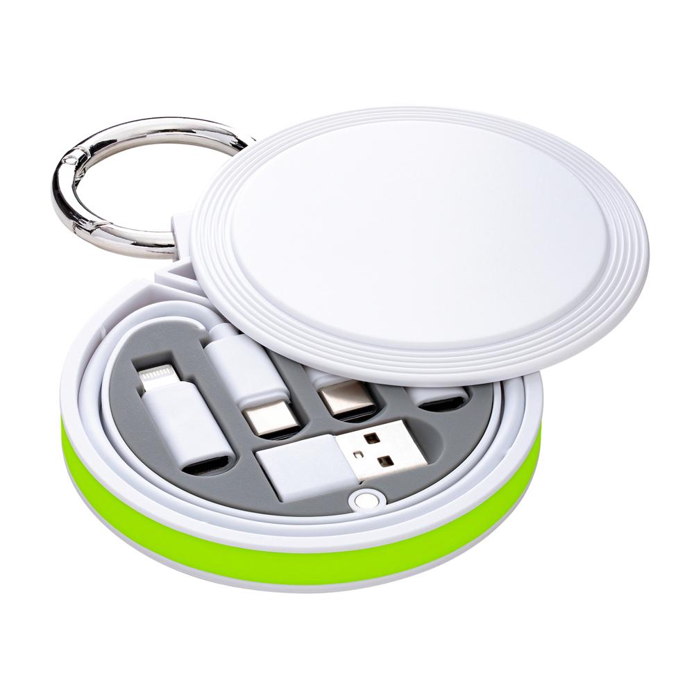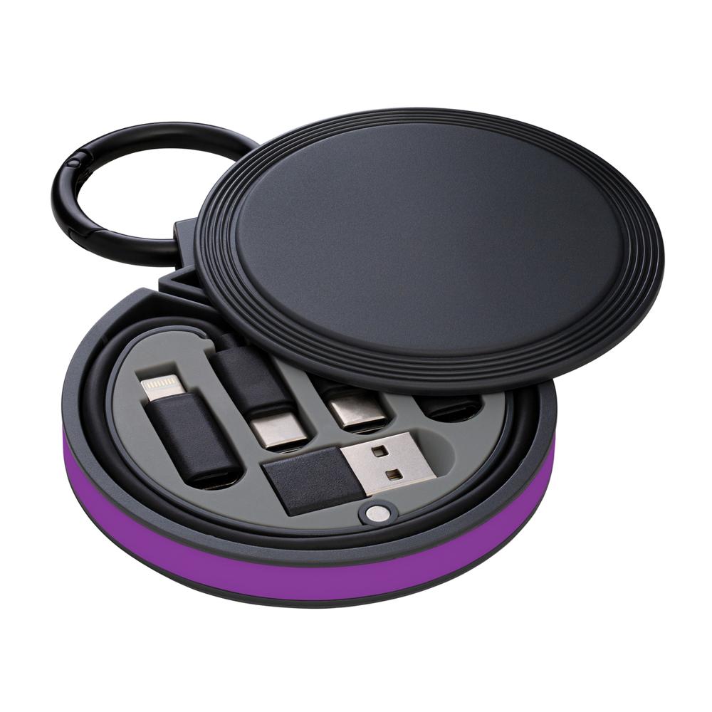 Je lost met de REEVES-myCONVERTICS 6-in-1 laadkabel alle kabelaosjes op, ideaal als gepersonaliseerd relatiegeschenk met jouw logo. Deze compacte set bevat een USB-C naar USB-C oplaadkabel van 48 cm, plus adapters voor Micro-USB, 8-Pin Apple en USB-A. Dankzij de karabijnhaak en splitring van Ø 42 mm hang je hem eenvoudig aan je sleutels of tas – superhandig voor events en dagelijks gebruik.