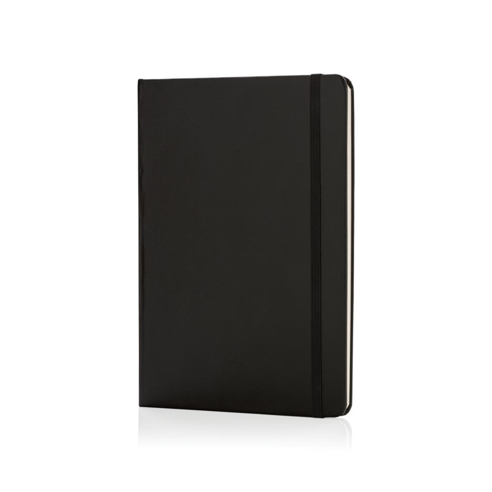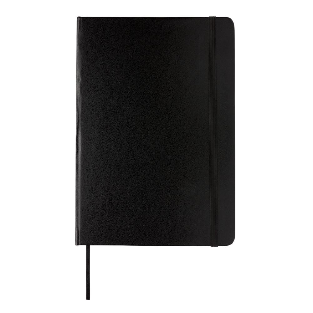A5 hardcover gelinieerd notitieboek met elastieken band sluiting en bladwijzer. 144 pagina’s van 70g/m2.