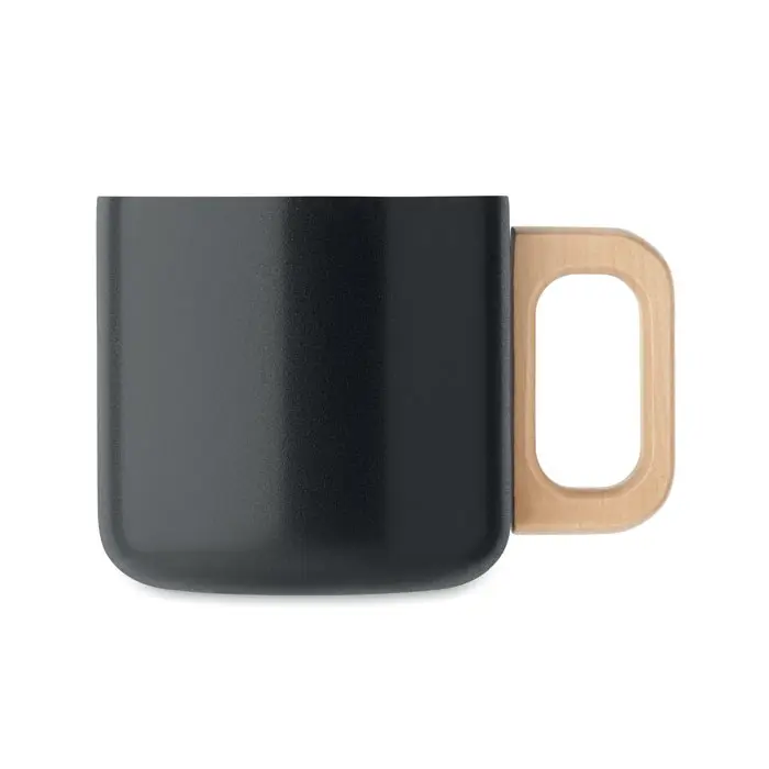 Ontdek onze dubbelwandige mok met een inhoud van 350 ml, vervaardigd uit 90% gerecycled roestvrij staal en aangevuld met 10% roestvrij staal. Het houten handvat biedt een aangename grip en zorgt voor een stijlvol design. Deze mok is ideaal voor uw merkpromotie door de mogelijkheid tot logobedrukking.
