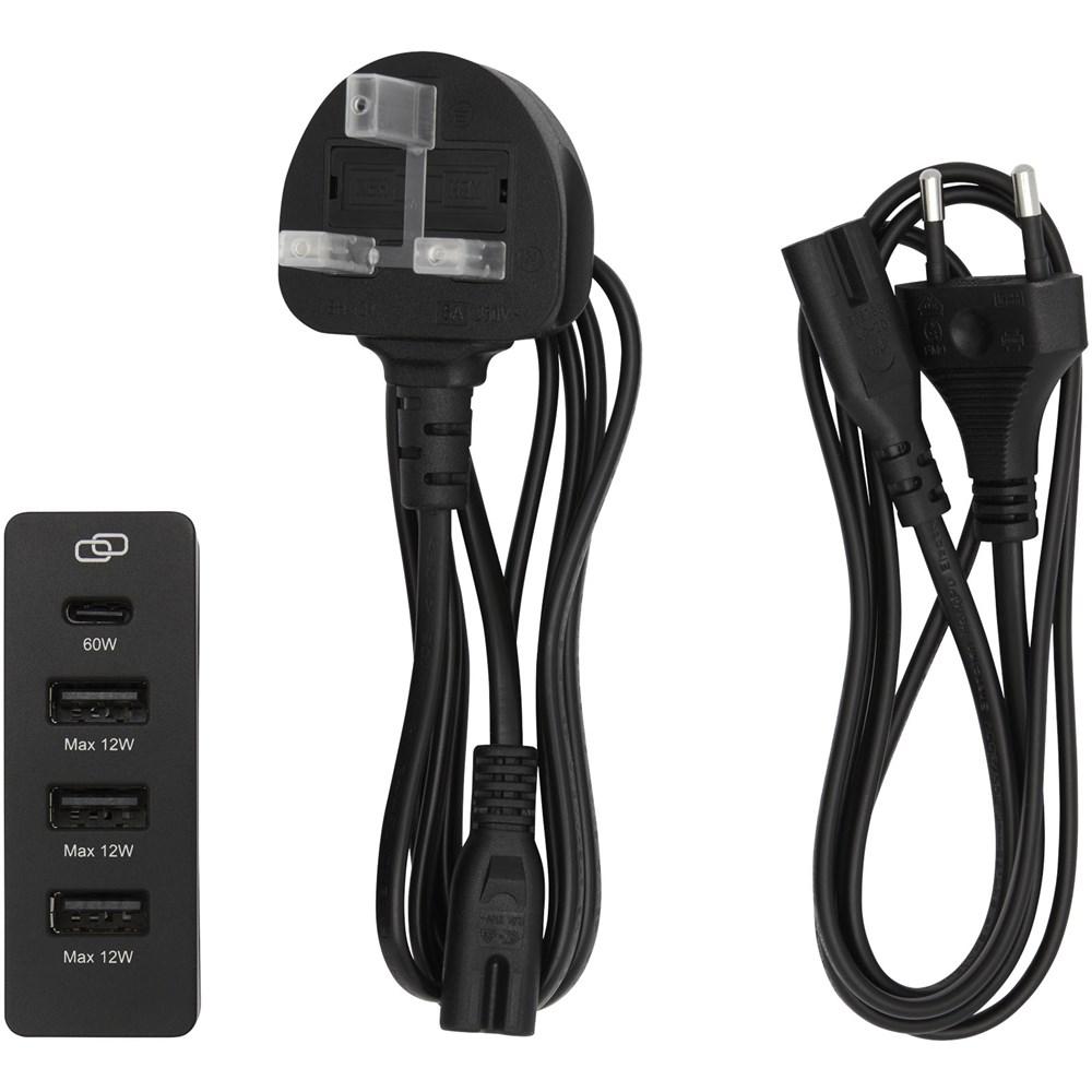 - Meerdere poorten: 3 USB-A (elk 5 V/2,4 A, 12 W max.) en 1 USB-C voor gelijktijdig opladen van smartphones, tablets en laptops.