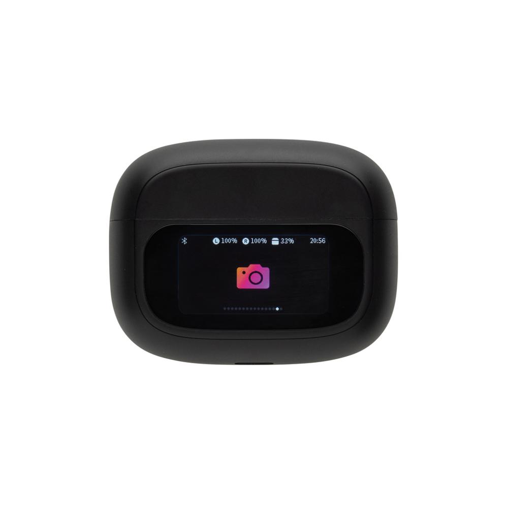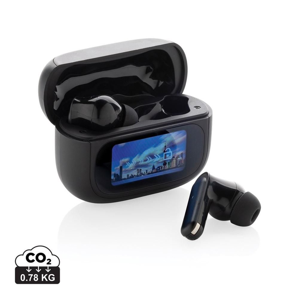 Geniet in stilte met deze ANC-oordopjes. De ANC-functie zorgt ervoor dat achtergrondgeluiden worden verminderd voor optimale concentratie. De oplaadcase heeft een geïntegreerd TFT-touchscreen met vele unieke functies: zoek je oordopjes, pas het volume aan, selecteer het volgende nummer, neem gesprekken aan en verander de taal (kiezen uit 8 talen) en nog veel meer. De oordopjes en oplaadcase zijn gemaakt van RCS (Recycled Claim Standard) gecertificeerd gerecycled ABS. Totaal gerecycled materiaal: 43% op basis van het totale gewicht van het product. RCS-certificering garandeert een volledig gecertificeerde toeleveringsketen van de gerecyclede materialen. De oordopjes gebruiken BT 5.3 voor automatische koppeling zonder gedoe en een stabiele verbinding. De oordopjes hebben een batterij van 30 mAh die een speeltijd van maximaal 6 uur (met ANC) mogelijk maakt en in 1,5 uur kan worden opgeladen in de oplaadcase. ANC-niveau: 23 dB. Inclusief 3 maten oordopjes. IPX 4 waterproof. FSC kraft doos.