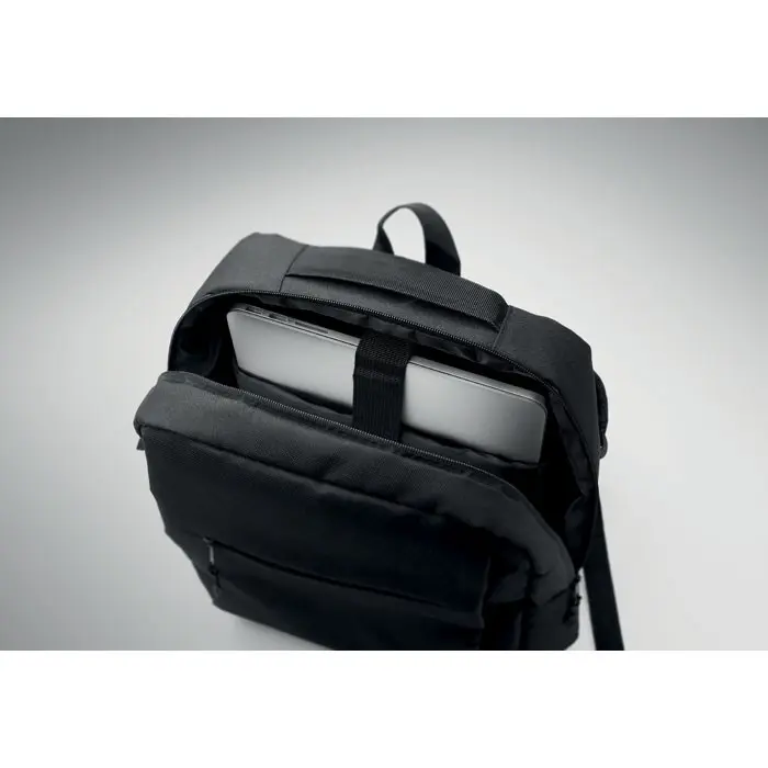 Ontdek deze praktische en milieuvriendelijke rugzak, ideaal als relatiegeschenk voor uw bedrijf. Gemaakt van 600D RPET-polyester uit gerecyclede materialen met een 210D voering, biedt deze smalle rugzak optimale bescherming voor uw laptop en tablet. Perfect voor marketingacties of events, waar u uw merk professioneel kunt promoten.