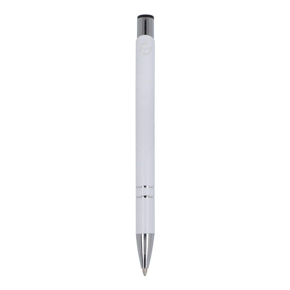 De gerecycleerde aluminium editie van onze populaire Alicante-pen, met een glanzende afwerking; een elegante aluminium balpen met twee ringen in het lichaam van de pen om het een speciale uitstraling te geven. De pen bevat blauwe inkt.