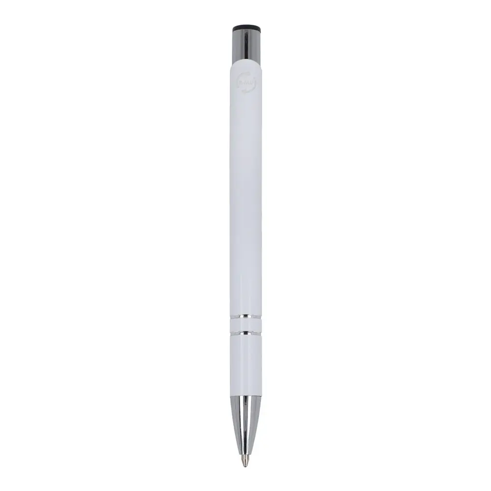 Ontdek onze gerecyclede aluminium balpen, een stijlvolle keuze voor uw marketingacties. Deze elegante pen heeft een verfijnde afwerking met twee subtiele ringen in het lichaam, wat een unieke en professionele uitstraling geeft. Met een diameter van 10 mm ligt deze pen prettig in de hand en biedt ze langdurig schrijfcomfort.