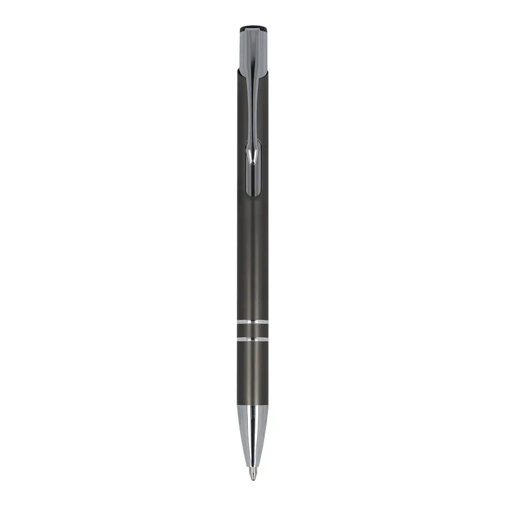 Ontdek de Alicante mat R-AL, onze duurzame aluminium balpen uit gerecycled materiaal met een matte afwerking. Deze elegante pen kenmerkt zich door twee subtiele ringen in het lichaam, wat een verfijnde uitstraling geeft en perfect past bij uw bedrijfsimago. Ideaal als gepersonaliseerd relatiegeschenk met logobedrukking voor events of marketingcampagnes.