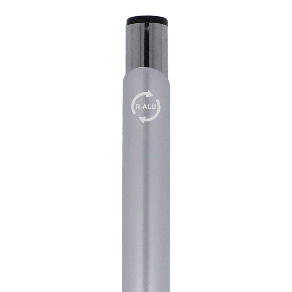 De gerecycleerde aluminium editie van onze populaire Alicante-pen, met een matte afwerking; een elegante aluminium balpen met twee ringen in het lichaam van de pen om het een speciale uitstraling te geven. De pen bevat zwarte inkt.
