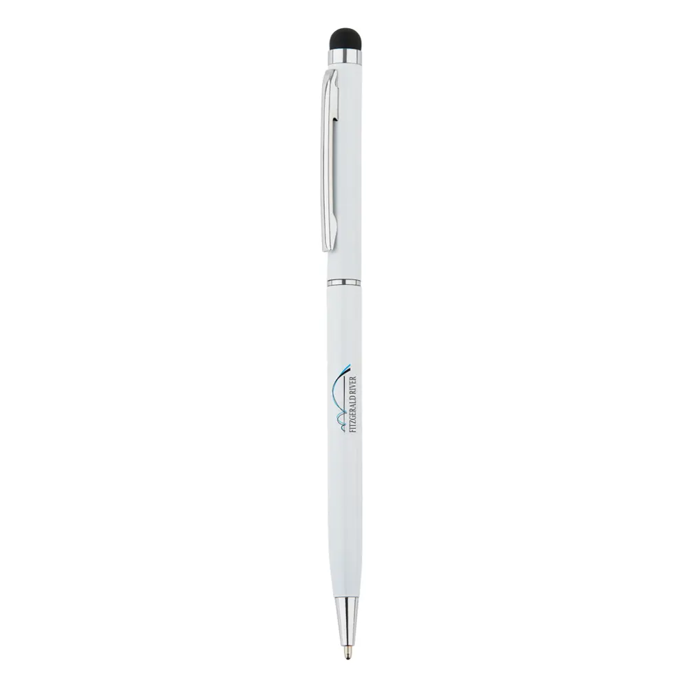 Ontdek deze hoogwaardige aluminium touchscreen pen, ideaal als gepersonaliseerd relatiegeschenk voor uw bedrijf. Met een handig twistmechanisme opent u moeiteloos de punt, terwijl het rubberen grip zorgt voor comfortabel schrijven. Perfect voor marketingacties en events, waar u deze pen met uw logo kunt laten bedrukken om uw merk te promoten bij klanten.