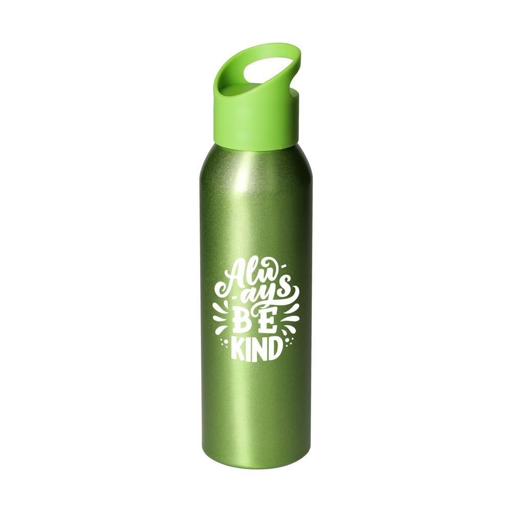 Geen zware drinkflessen meer! Met nog geen 100 gram is deze aluminiumfles jouw ideale metgezel voor elk avontuur of event. De kunststofdop zorgt voor een lekvrije afsluiting, en het stijlvolle design maakt indruk bij je klanten. Met een inhoud van 600 ml en een diameter van 65 mm past hij perfect in elke tas.