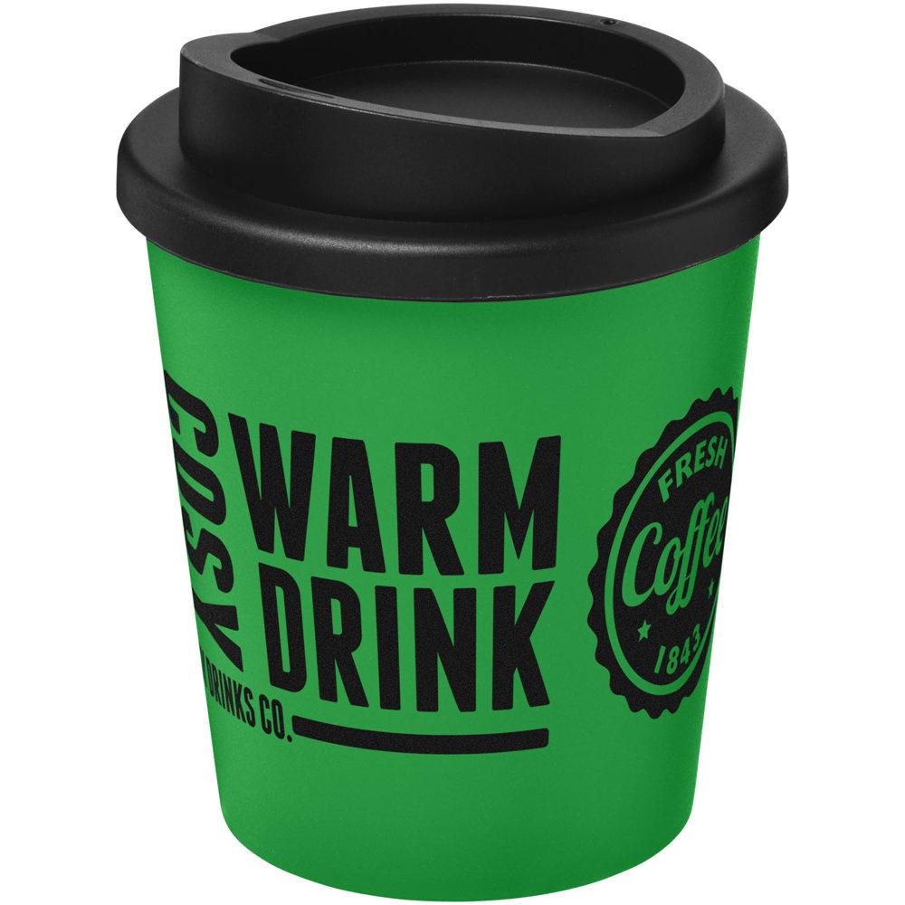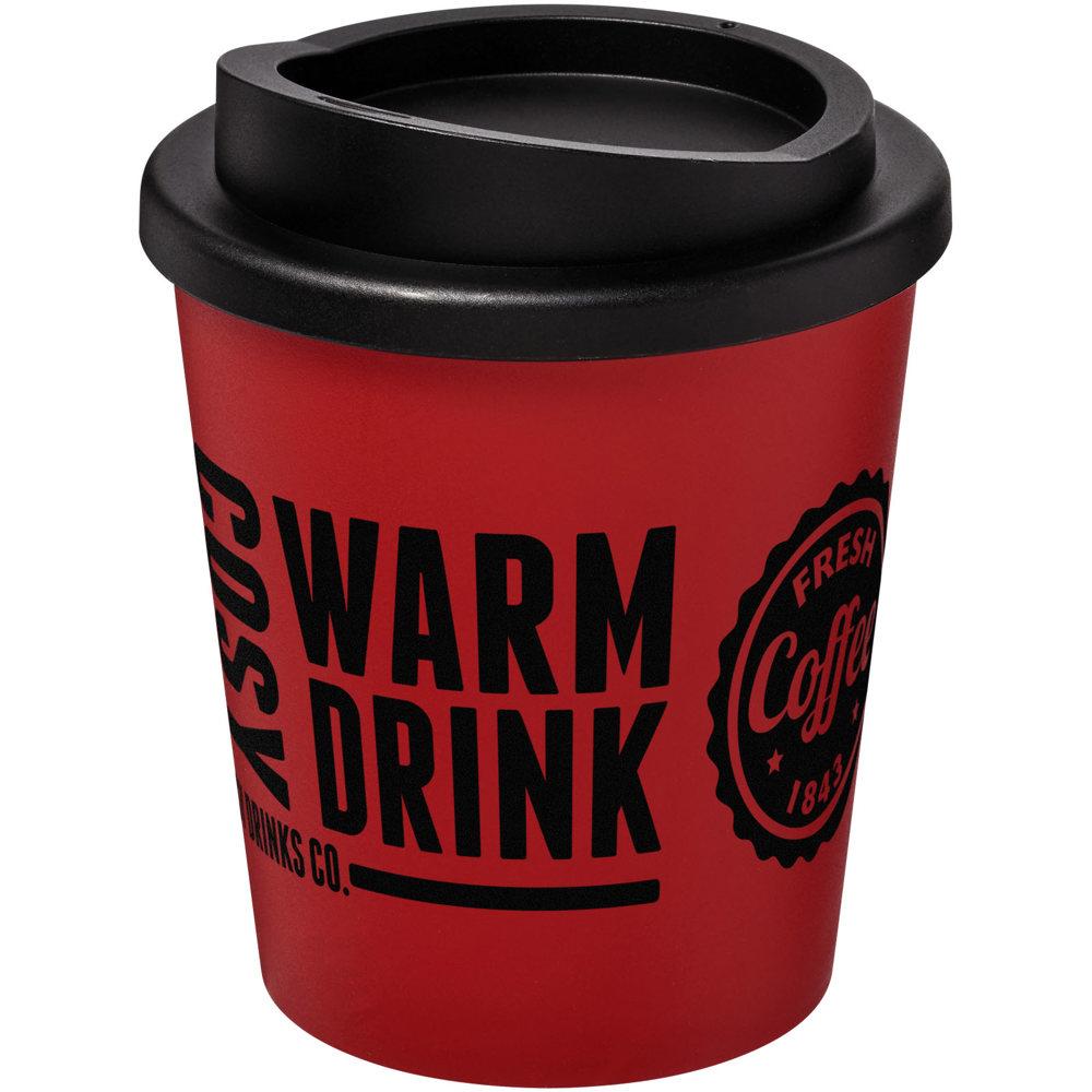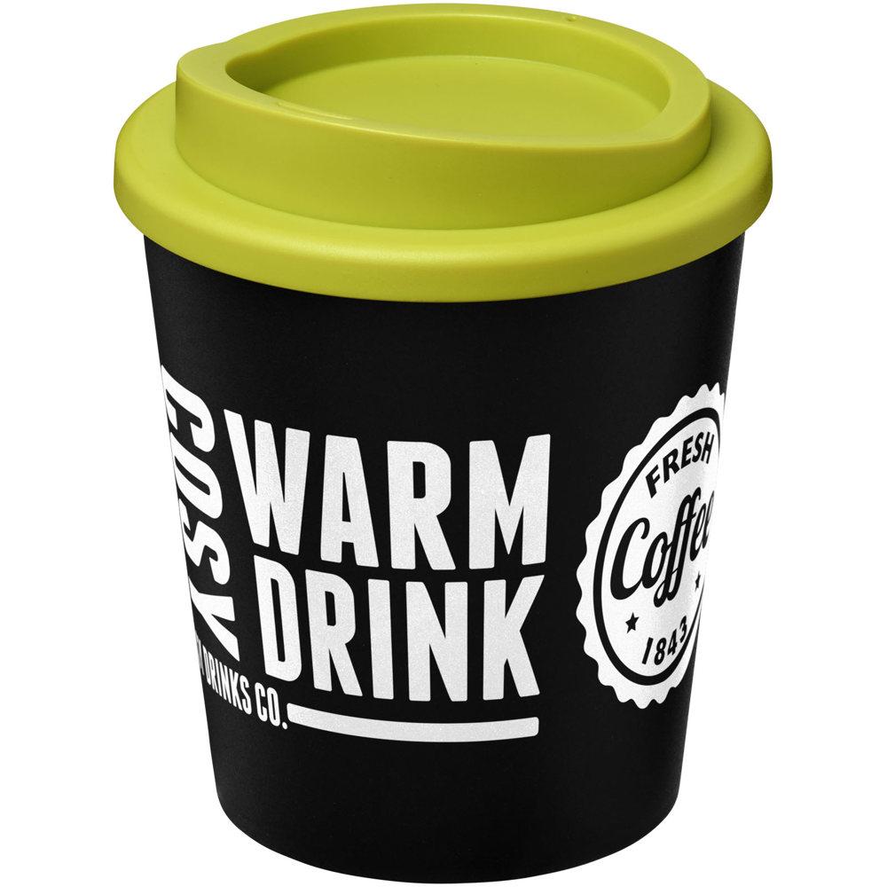 Je promoot je merk stijlvol met deze compacte, dubbelwandige geïsoleerde beker van 250 ml. Het draaideksel voorkomt morsen en het formaat past perfect onder de meeste koffiezetapparaten, ideaal voor op kantoor of events. Personaliseer met je logo voor een blijvende indruk bij je klanten.