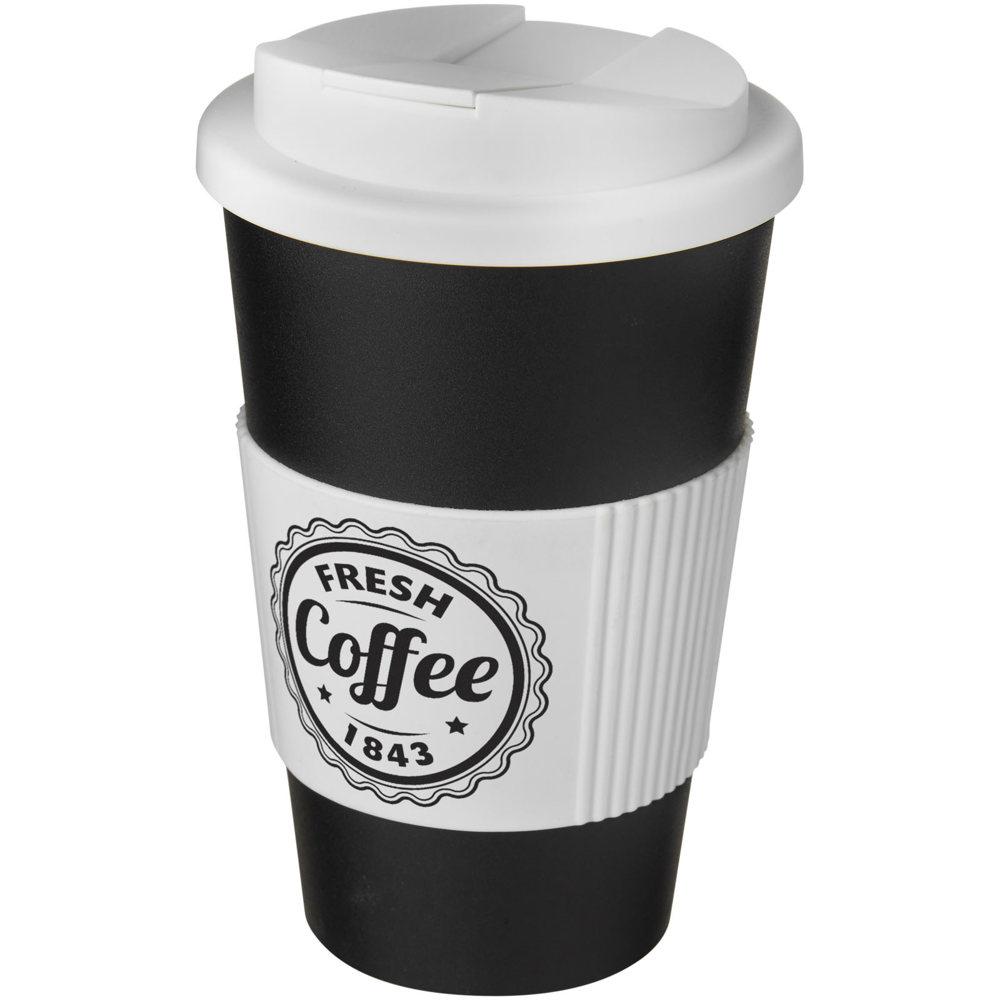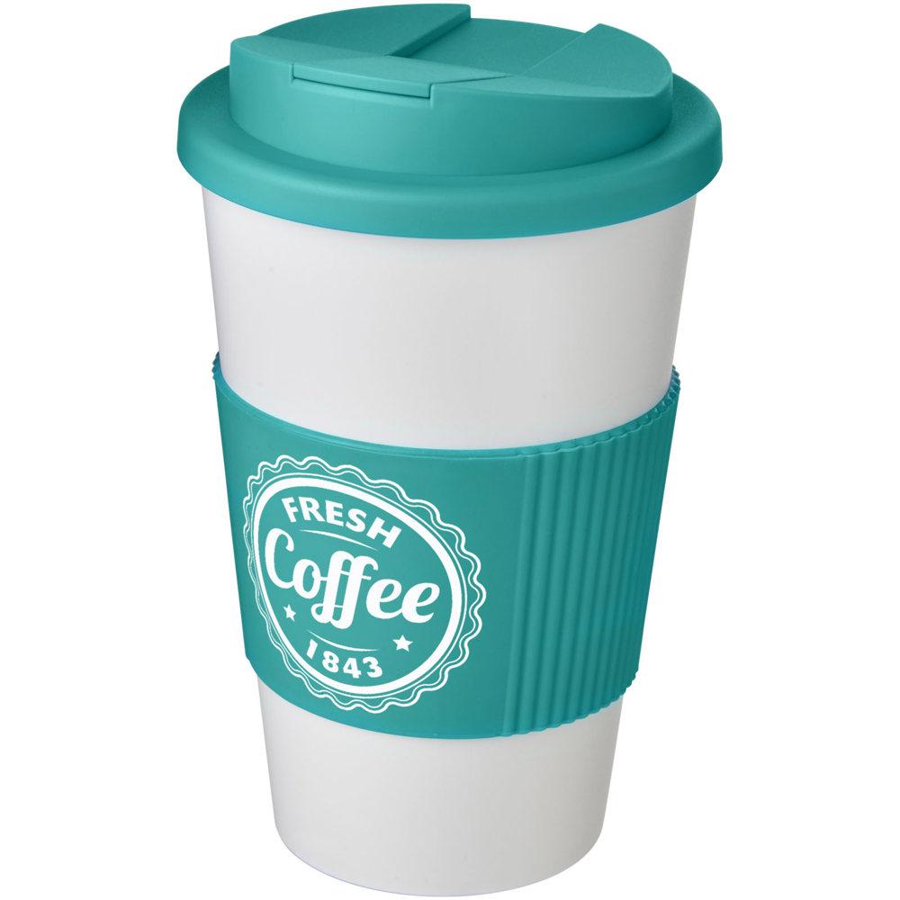 Dubbelwandige geïsoleerde beker met draaideksel en een siliconen handvat. Inhoud is 350 ml. Mix en match kleuren om je perfecte beker te creëren. Gemaakt in het Verenigd Koninkrijk. Verpakt in een gerecyclede PE plastic zak. BPA-vrij en vaatwasmachinebestendig.