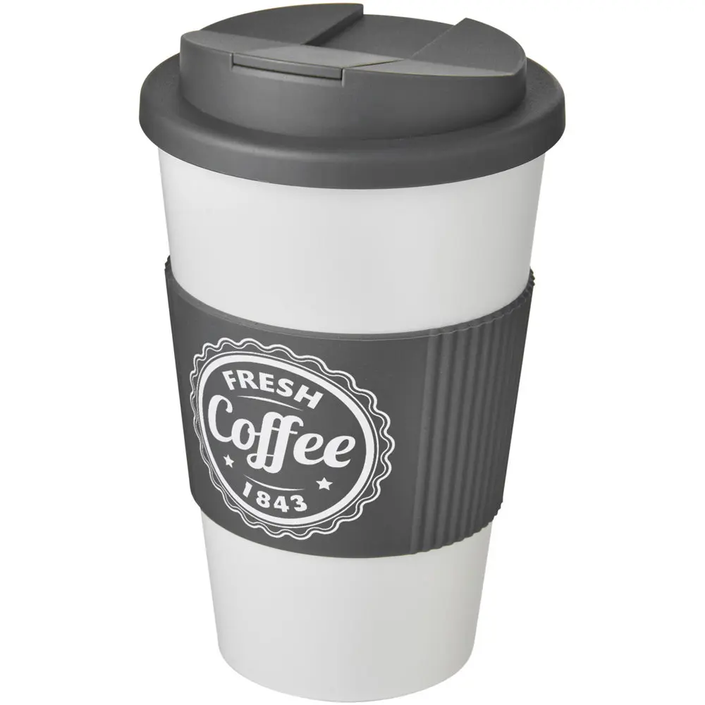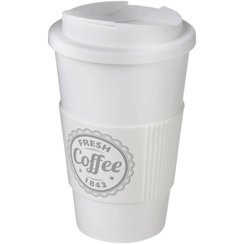 De Americano® 350 ml geïsoleerde beker met handvat is uw ideale partner voor gepersonaliseerde relatiegeschenken. Deze dubbelwandige beker houdt uw drankjes urenlang warm of koud, terwijl het siliconen handvat een stevige en comfortabele grip biedt. Met het handige draaideksel voorkomt u morsen, perfect voor onderweg of op events.