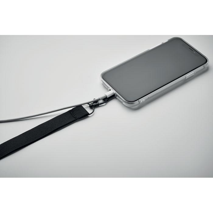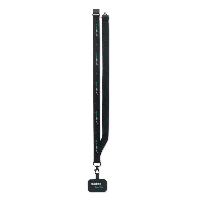 Hou je telefoon altijd bij de hand met deze praktische lanyard van polyester. De brede lus van 2 cm past perfect om je pols of nek, met een handig telefoonkoord en veiligheidsgesp die voorkomt dat je toestel valt. Ideaal als gepersonaliseerd relatiegeschenk met jouw logo: je klanten dragen jouw merk zichtbaar tijdens events of dagelijks.