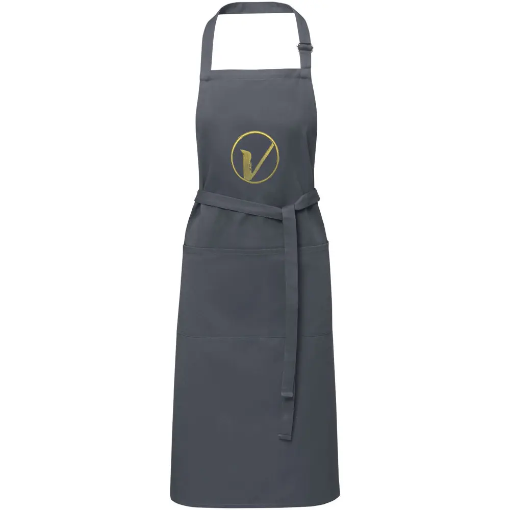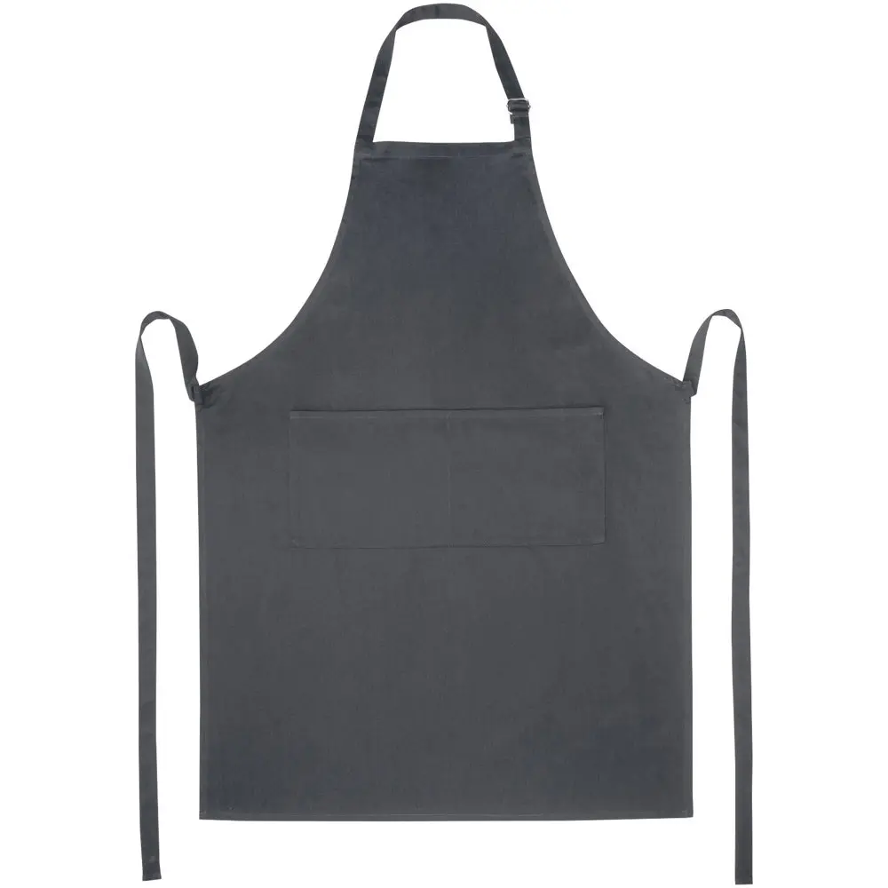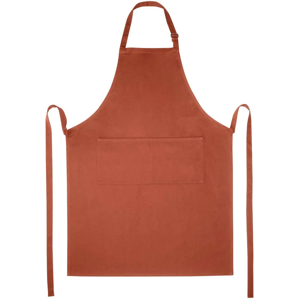 Met verstelbare nekband en rugsluiting past dit schort one-size-fits-all (100 x 70 cm), geschikt voor diverse doelgroepen. Profiteer van meerdere grote afdrukposities voor een prominente logobedrukking, die uw merk maximaal zichtbaar maakt bij uitdelingen aan klanten. Dit promotie-artikel versterkt uw bedrijfsimago en biedt herhaalde exposure tijdens dagelijks gebruik.