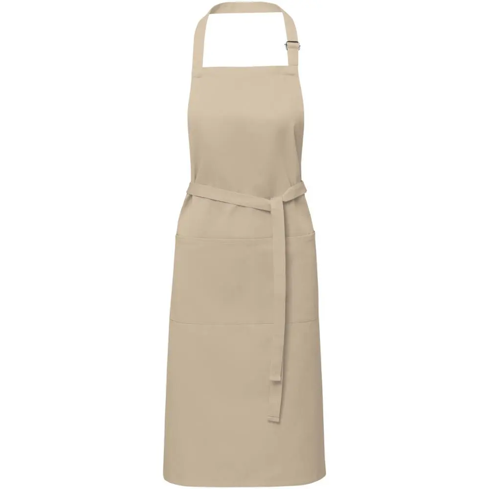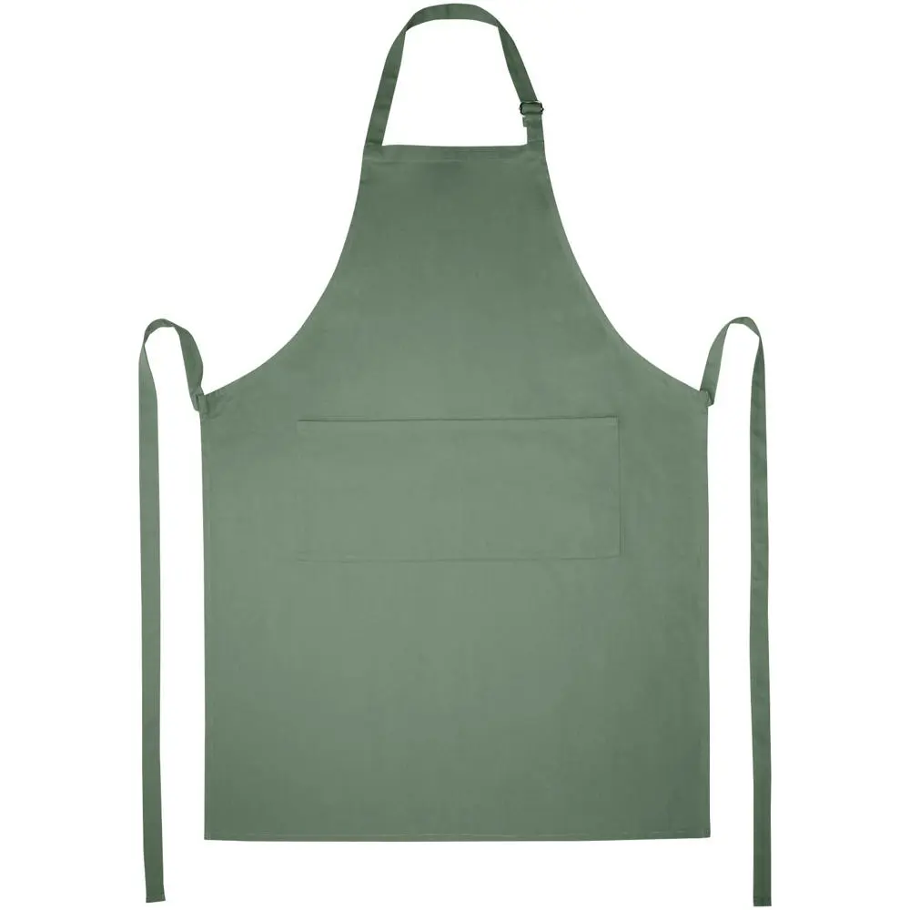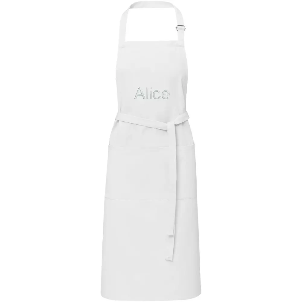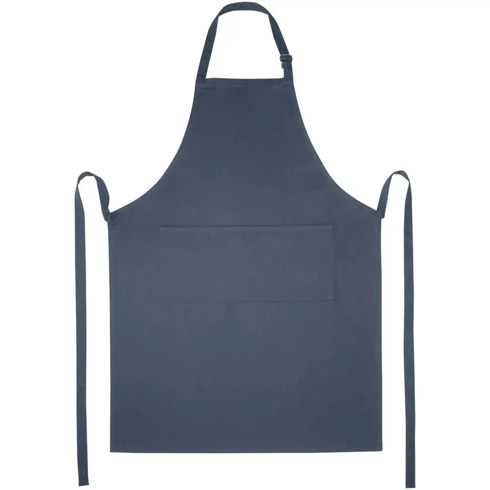 Met verstelbare nekband en rugsluiting past dit schort one-size-fits-all (100 x 70 cm), geschikt voor diverse doelgroepen. Profiteer van meerdere grote afdrukposities voor een prominente logobedrukking, die uw merk maximaal zichtbaar maakt bij uitdelingen aan klanten. Dit promotie-artikel versterkt uw bedrijfsimago en biedt herhaalde exposure tijdens dagelijks gebruik.