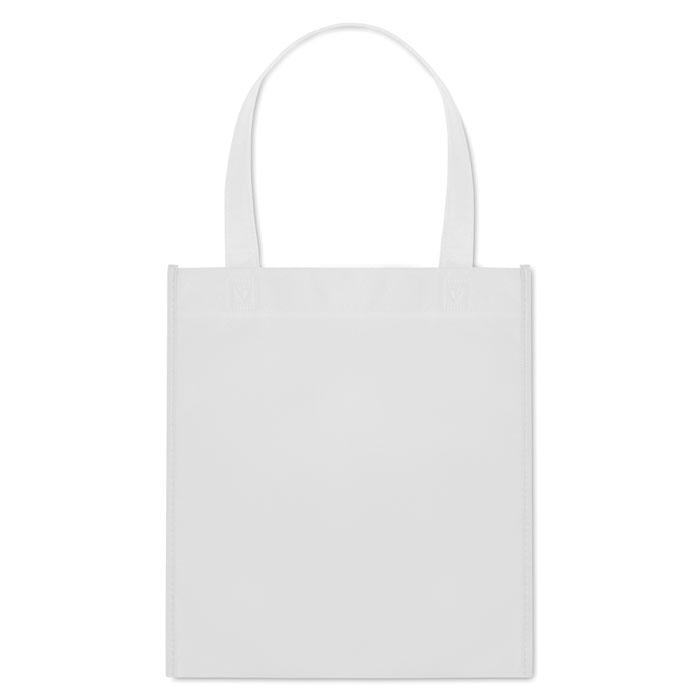 Non-woven boodschappentas met heat seal gelaste korte hengsels. 80 g/m2.