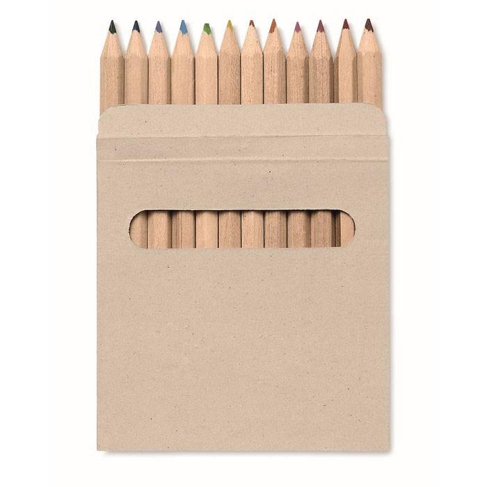 Set van 12 kleurpotloden in natuurlijk gerecycled kartonnen doosje.