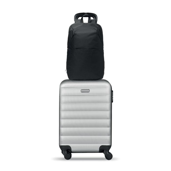 15 inch anti-diefstal laptoprugzak van 600D RPET polyester. Voorzien van verschillende vakken waarvan één extra gevoerde voor tablet en meer. Gewatteerde schouderbanden en hoofdvak aan de achterkant.