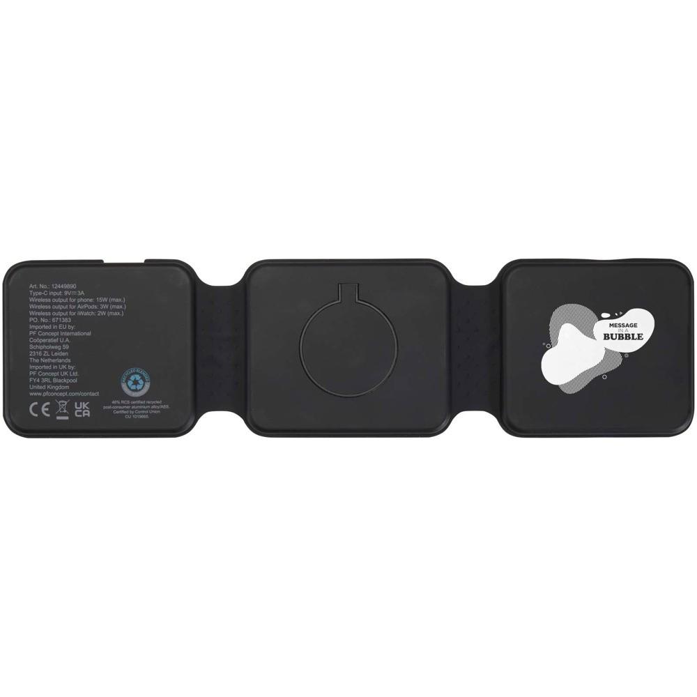 Opvouwbare 3-in-1 draadloze oplader van gerecycled plastic