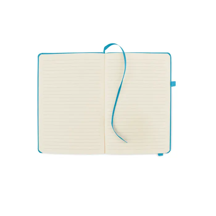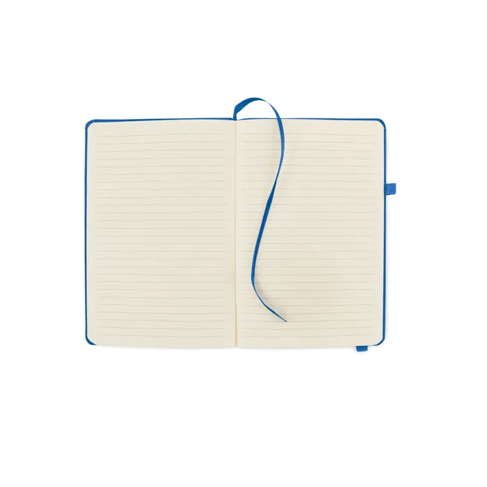 Ontdek ons A5 notitieboek met een omslag van 70% gerecycled leer en 30% PU latex. Dit geval gebonden exemplaar biedt 192 gelinieerde pagina's van gerecycled papier, verdeeld over 96 vellen. Een bijpassende elastische katoensluitband en penhouder maken het compleet. Ideaal voor uw bedrijf als duurzaam relatiegeschenk met logobedrukking.