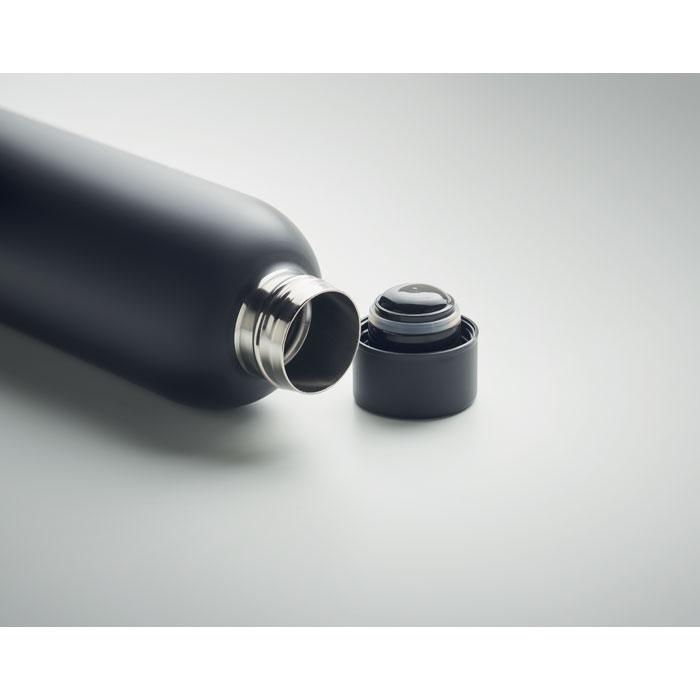 Deze dubbelwandige vacuümfles van gerecycled roestvrij staal met 500 ml inhoud isoleert uitstekend, zodat je dranken urenlang koud of warm blijven. Lekvrij en robuust, ideaal voor events en promoties.
