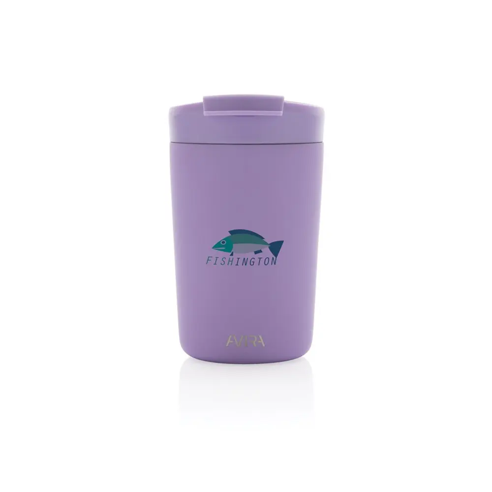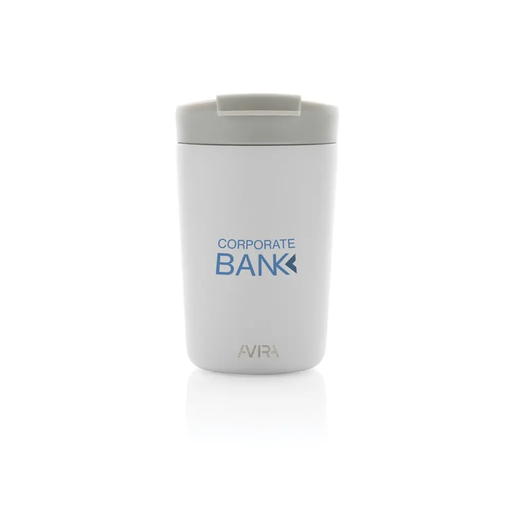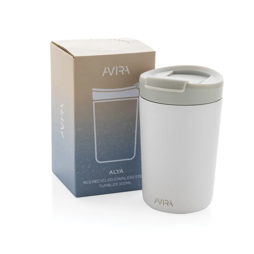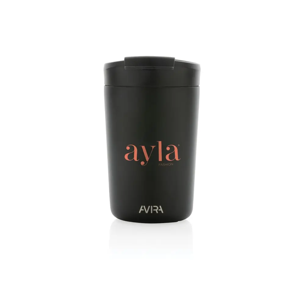 Ontdek de Avira Alya roestvrijstalen beker van 300 ml, ideaal als gepersonaliseerd relatiegeschenk voor uw marketingcampagnes of events. Deze dubbelwandige, vacuümgeïsoleerde beker houdt warme dranken tot 6 uur heet en koude dranken tot 8 uur koel, zodat uw relaties altijd verfrist blijven. De antislip siliconen onderkant zorgt voor stabiel gebruik, terwijl de diameter van 70 mm een comfortabele grip biedt.