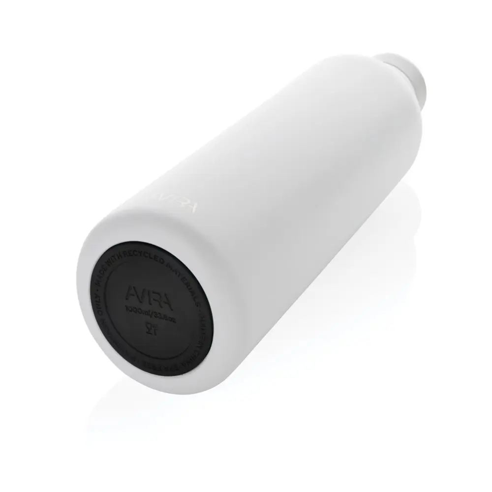 De Avior RCS Recycled roestvrijstalen vacuümfles is ideaal voor uw marketingacties en events, met de mogelijkheid tot personalisatie via logobedrukking. Dankzij de dubbelwandige vacuümconstructie uit gerecycled roestvrij staal blijft uw drank tot 20 uur koel of 10 uur warm, perfect voor onderweg of tijdens bijeenkomsten. Deze duurzame fles met 1 liter capaciteit past moeiteloos in standaard autobekerhouders en bevat 86% gerecycled materiaal volgens RCS-certificering, inclusief BPA-vrije en voedselveilige eigenschappen. De FSC-gecertificeerde kraftverpakking is herbruikbaar als telefoon- of potloodhouder. Kies voor deze eco-vriendelijke relatiegeschenken en draag bij aan duurzaamheid: 2% van elke verkoop gaat naar Water.org.