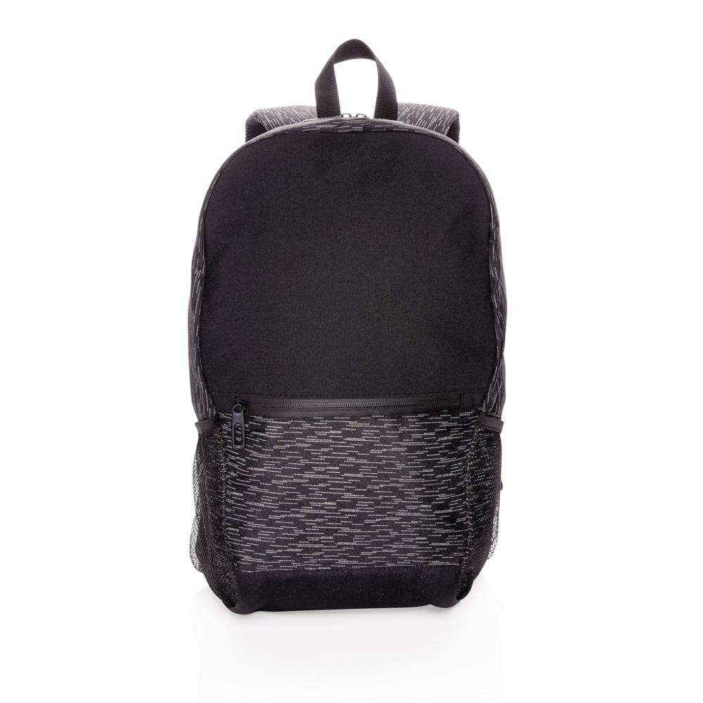 Praktisch en stijlvol met een moderne allover reflecterende print, ruim hoofdvak voor je 15,6 inch laptop, voorvak met rits en 2 mesh zijvakken, plus verstelbare schouderbanden. PVC-vrij en met 8 liter volume, ideaal om uit te delen aan relaties voor blijvende promotie.