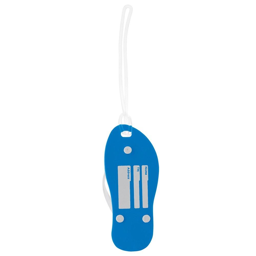 Je personaliseert dit unieke bagagelabel in de vorm van een slipper eenvoudig met jouw logo, perfect als origineel relatiegeschenk voor events of promotie.