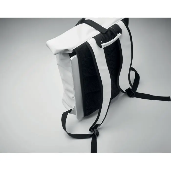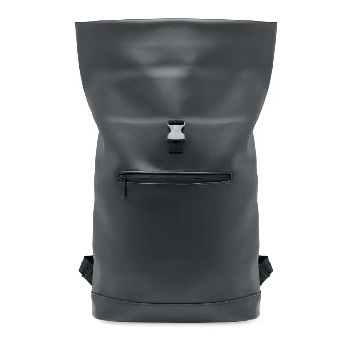 De BAI ROLL laptop rolltop rugzak van zacht PU biedt optimale bescherming voor uw 15-inch laptop dankzij de gewatteerde achterkant en verstevigde bodem. Het ruime voorvak met rits zorgt voor handig opruimruimte, terwijl de voering van 210D RPET bijdraagt aan duurzaamheid door gebruik van gerecycled materiaal. Ideaal als gepersonaliseerd relatiegeschenk met uw logo: deze rugzak versterkt uw merk bij events of als reclame-uitreksel. Kies voor milieubewuste promotie die stijl en functionaliteit combineert, en trek de aandacht van uw doelgroep met een kwalitatief, herbruikbaar product.