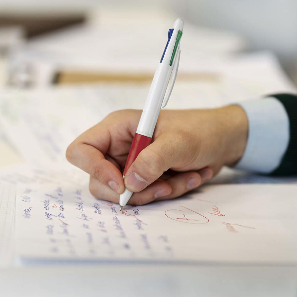 - Altijd de juiste kleur bij de hand: Rood, blauw, groen en zwart – perfect voor markeringen, onderstrepen of kleurcodering.