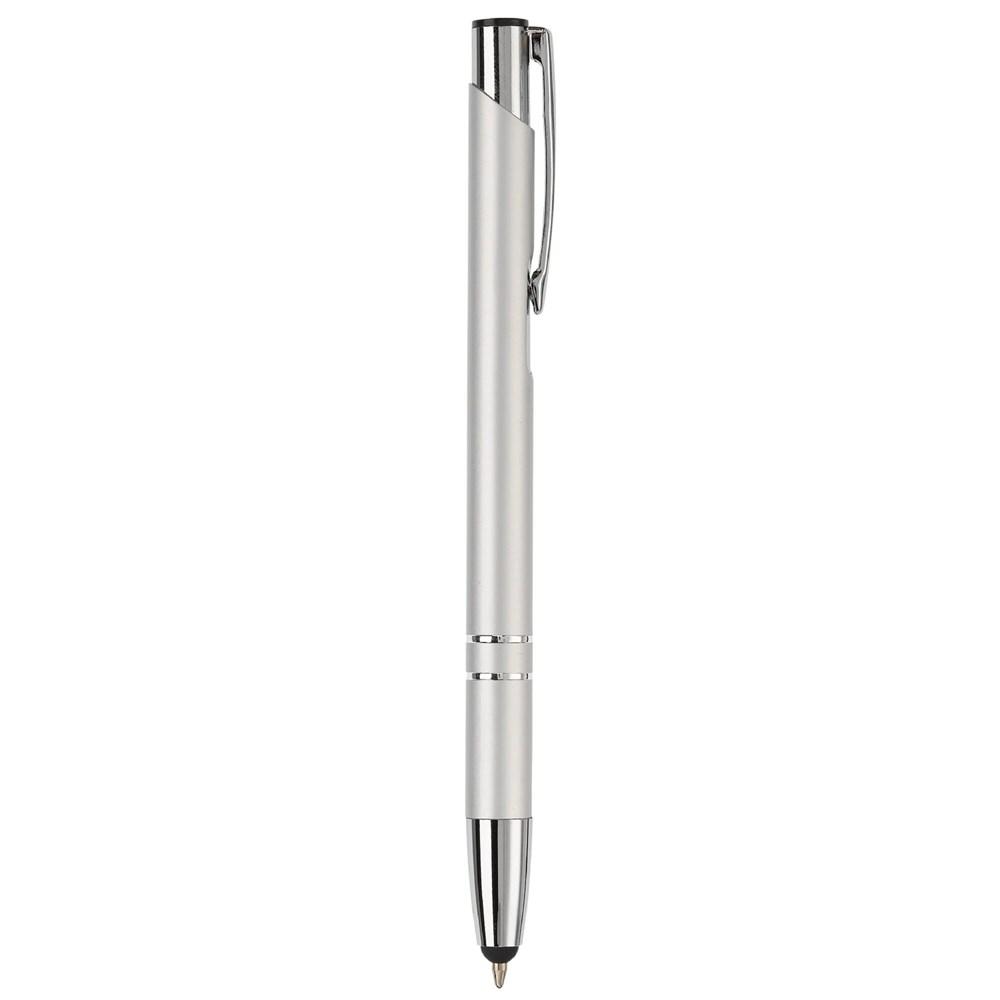 Ontdek de Balpen Alicante stylus metaal, een elegante aluminium balpen met geïntegreerde stylusfunctie voor naadloos schrijven en navigeren op je touchscreen. De twee subtiele ringen in het lichaam geven een uniek en opvallend design dat direct de aandacht trekt.