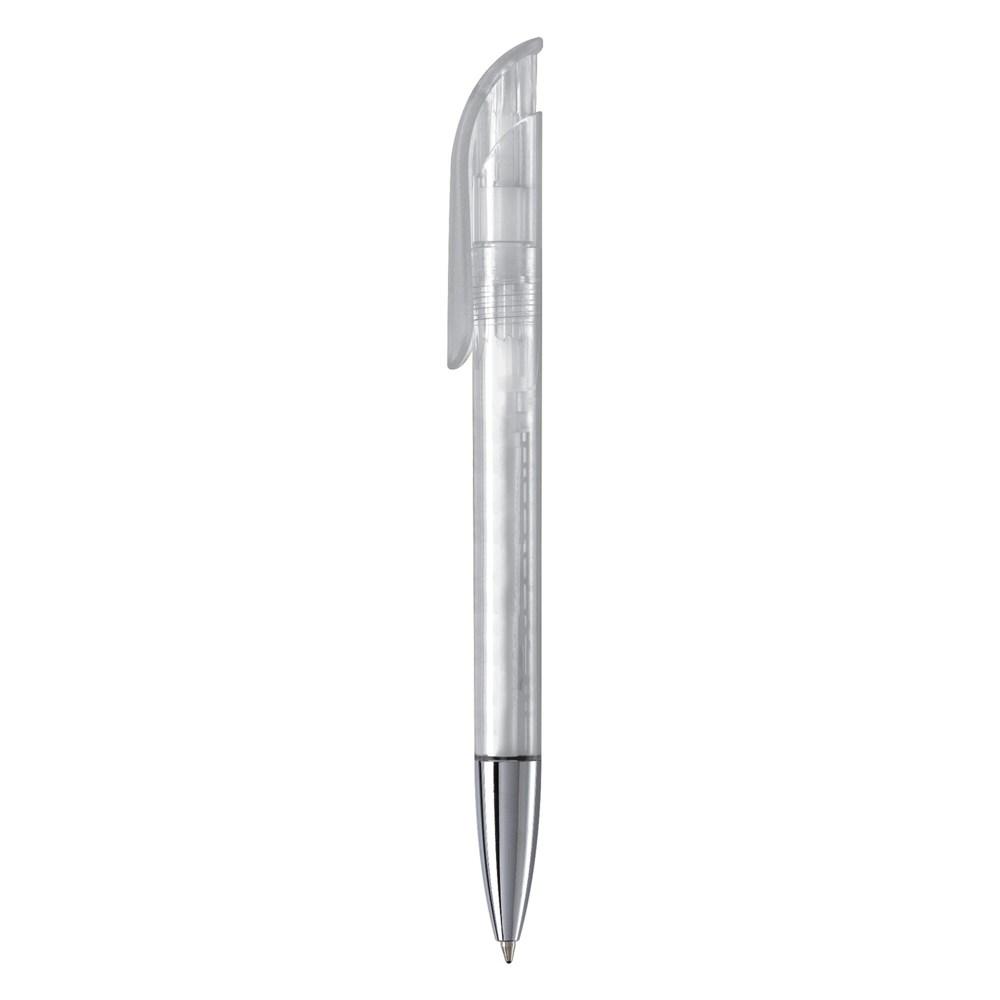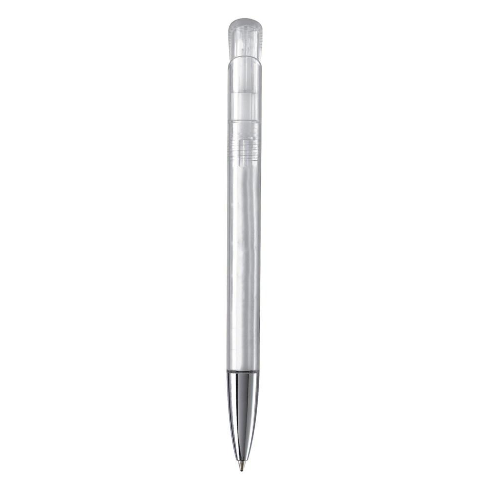 Toppoint design balpen, geproduceerd in Duitsland. Deze pen bevat een blauwschrijvende Jumbo vulling voor 4,5km schrijfplezier. Het is een transparante pen met een metalen tip.