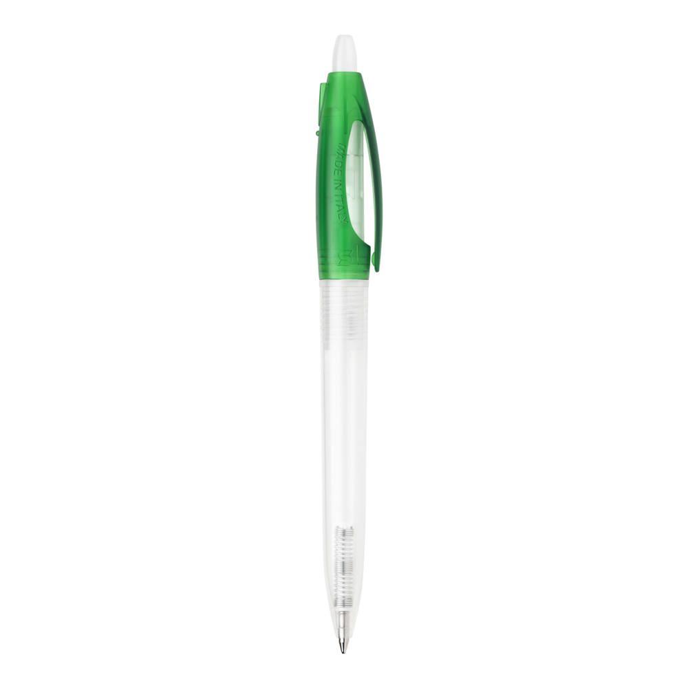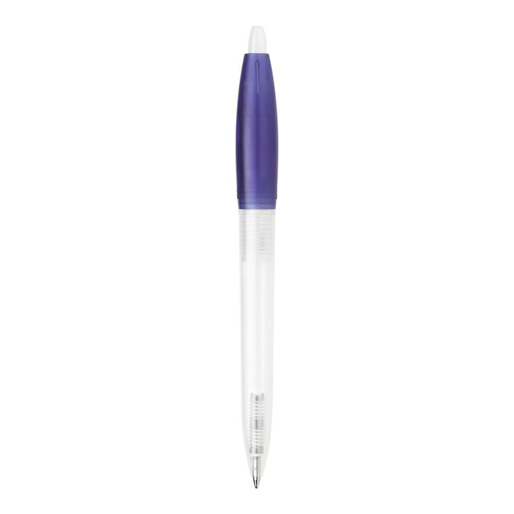 Transparante balpen Bio-S! met transparante barrel en gekleurde clip. Inclusief een X20 vulling met blauw schrijvende inkt. Gemaakt van PLA kunststof, wat een biologisch afbreekbaar materiaal is. Dit betekend dat het een goede en duurzame keuze is als promotioneel artikel. De pen heeft een drukmechaniek en is geproduceerd in Europa. Kleur combinaties voor deze pen zijn mogelijk vanaf 5.000 stuks.