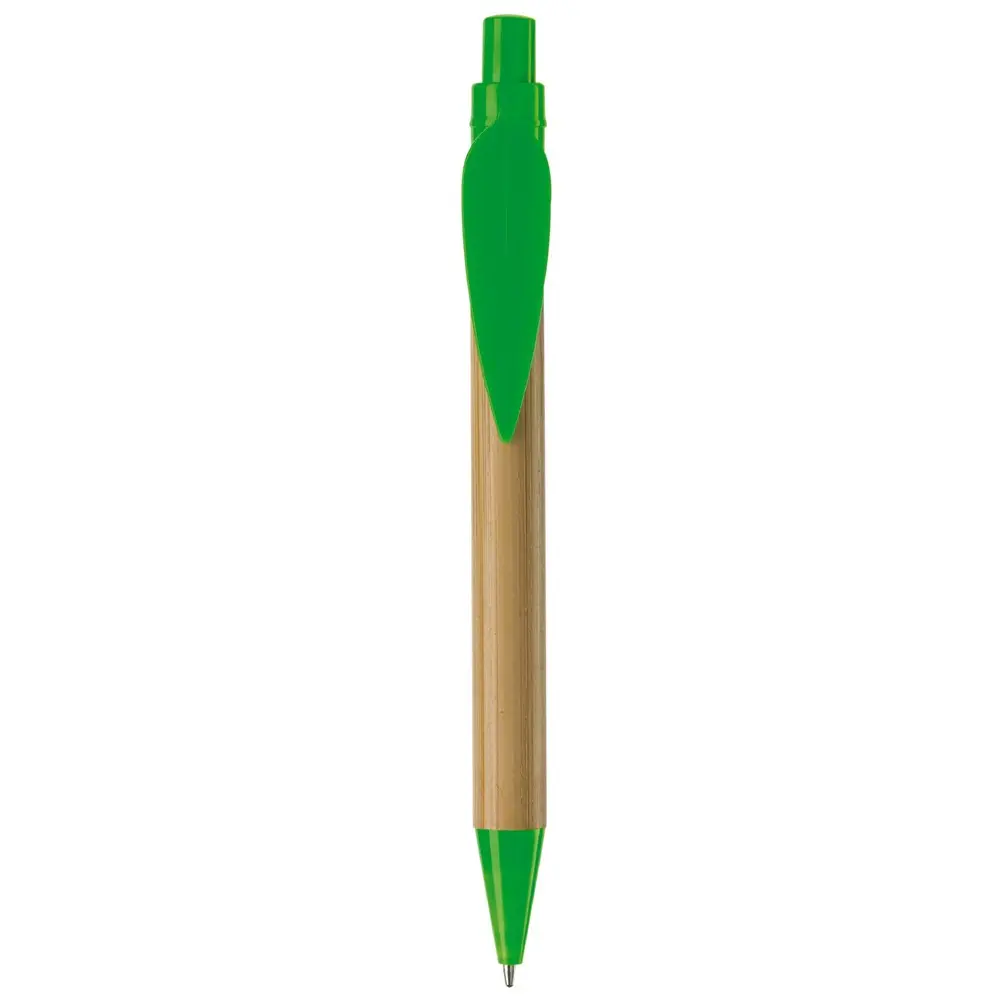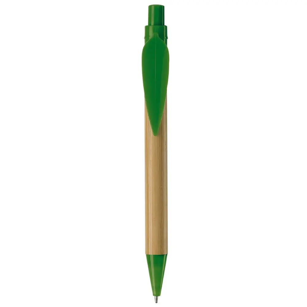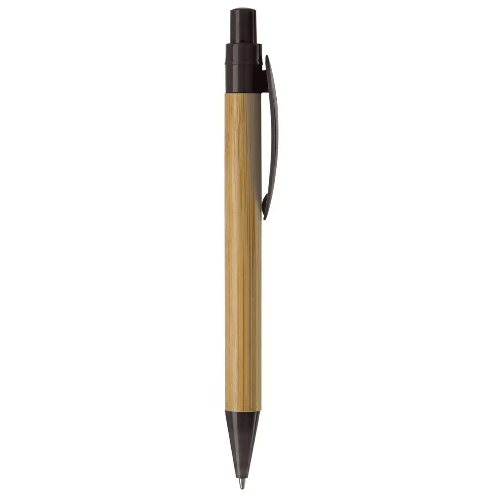 Ontdek onze bamboe balpen met een unieke clip in de vorm van een blad. Deze milieuvriendelijke pen is ideaal voor uw marketingcampagnes en events. De drukknop en het onderstuk zorgen voor een stevige en comfortabele grip, terwijl de X20-vulling met zwarte schrijfinkt zorgt voor vloeiend schrijven. Met een diameter van 11 mm past deze pen perfect in de hand.