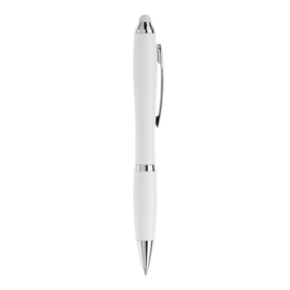Balpen met touchscreen punt en frosty grip, draaimechanisme en metalen punt, metal look ring en clip. Blauwschrijvende X20 vulling.