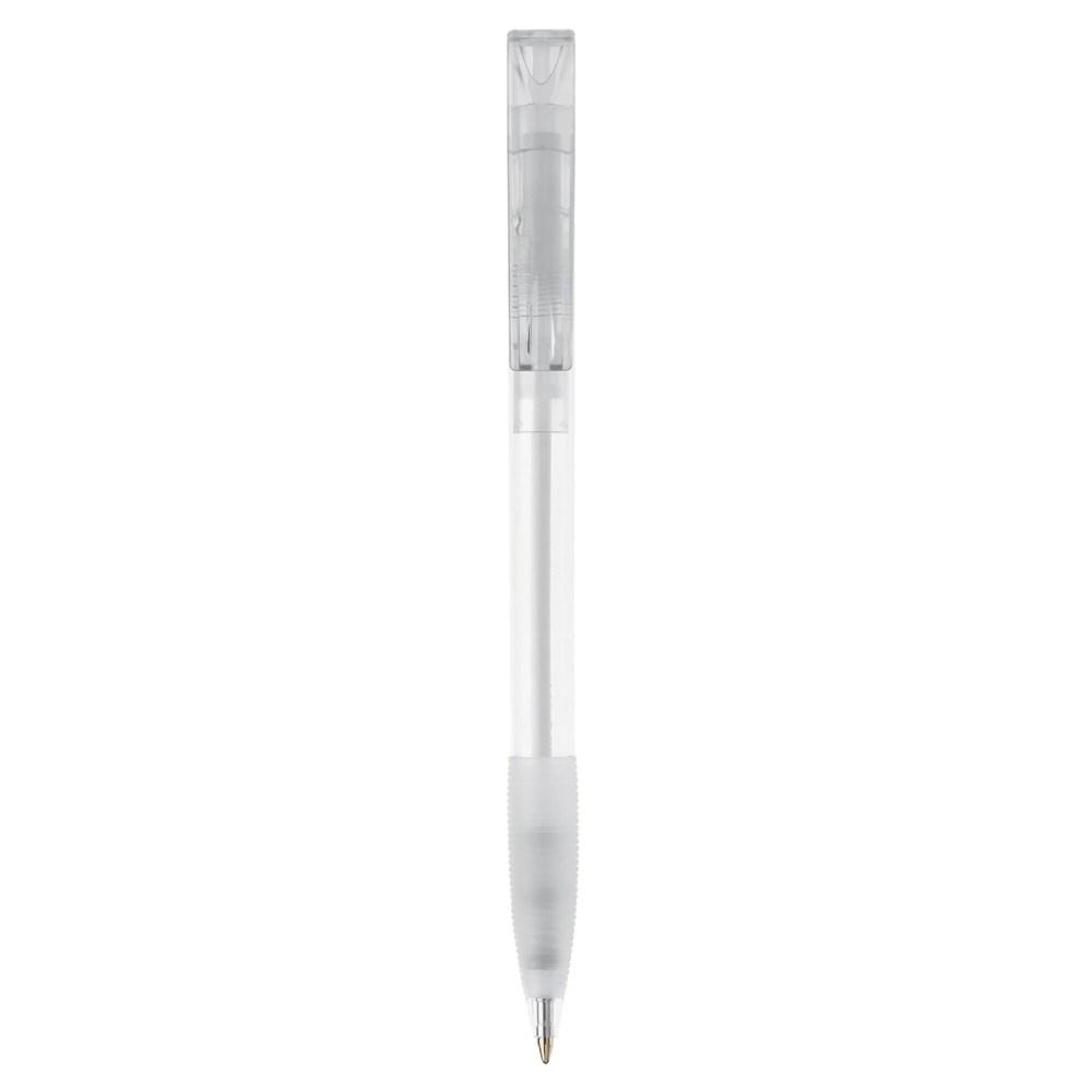 Toppoint design balpen, geproduceerd in Duitsland. Deze pen bevat een blauwschrijvende X20 vulling voor 2,5km schrijfplezier. Transparante pen met rubberen grip.