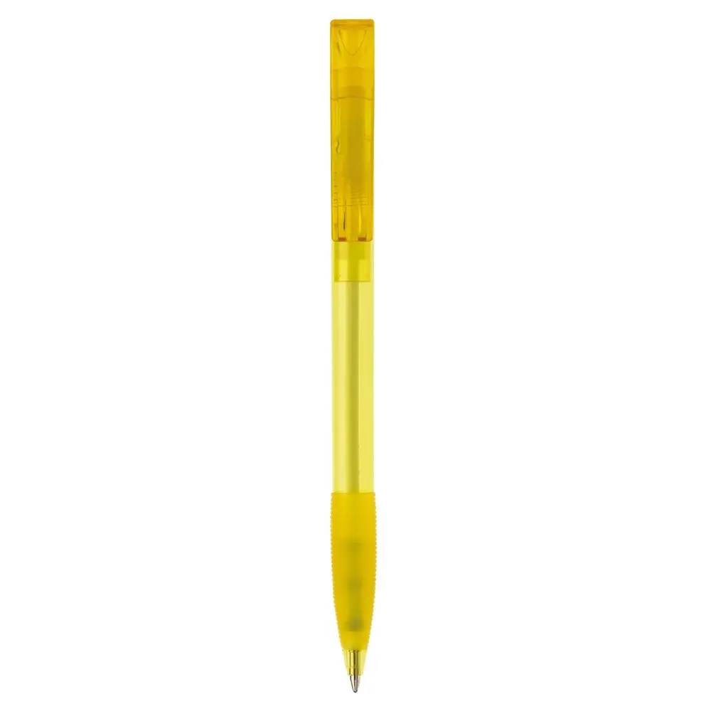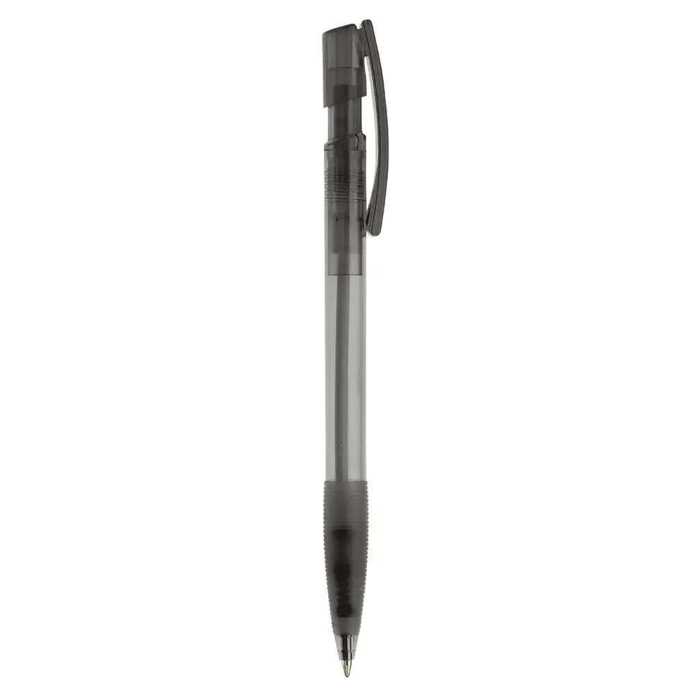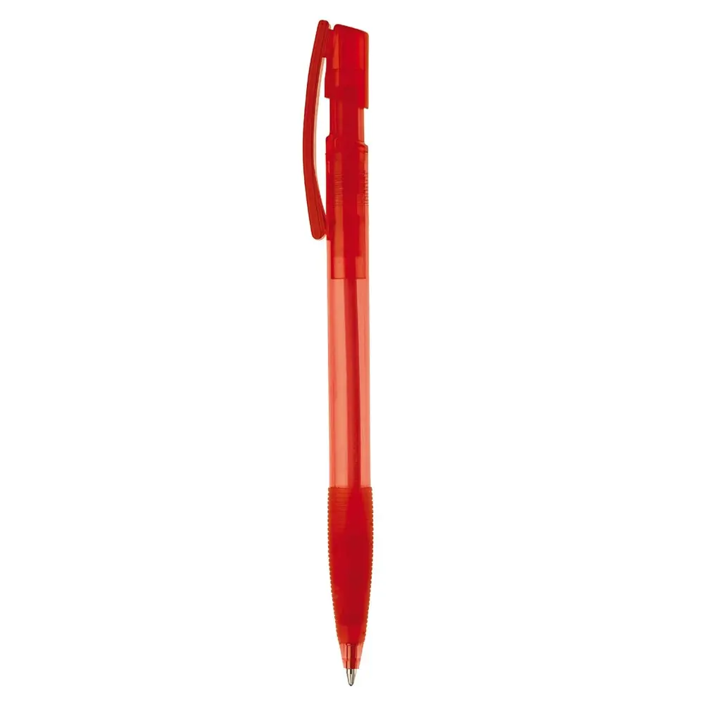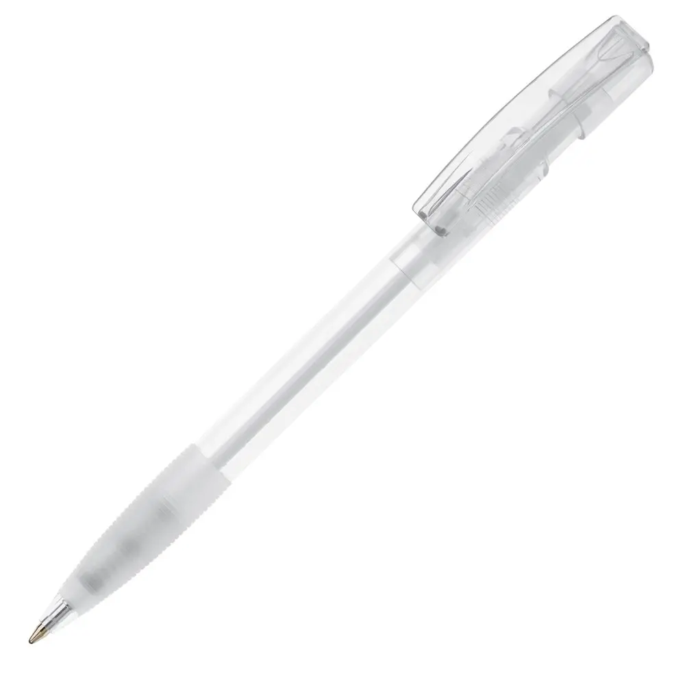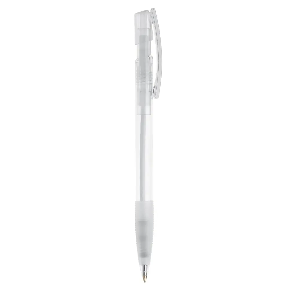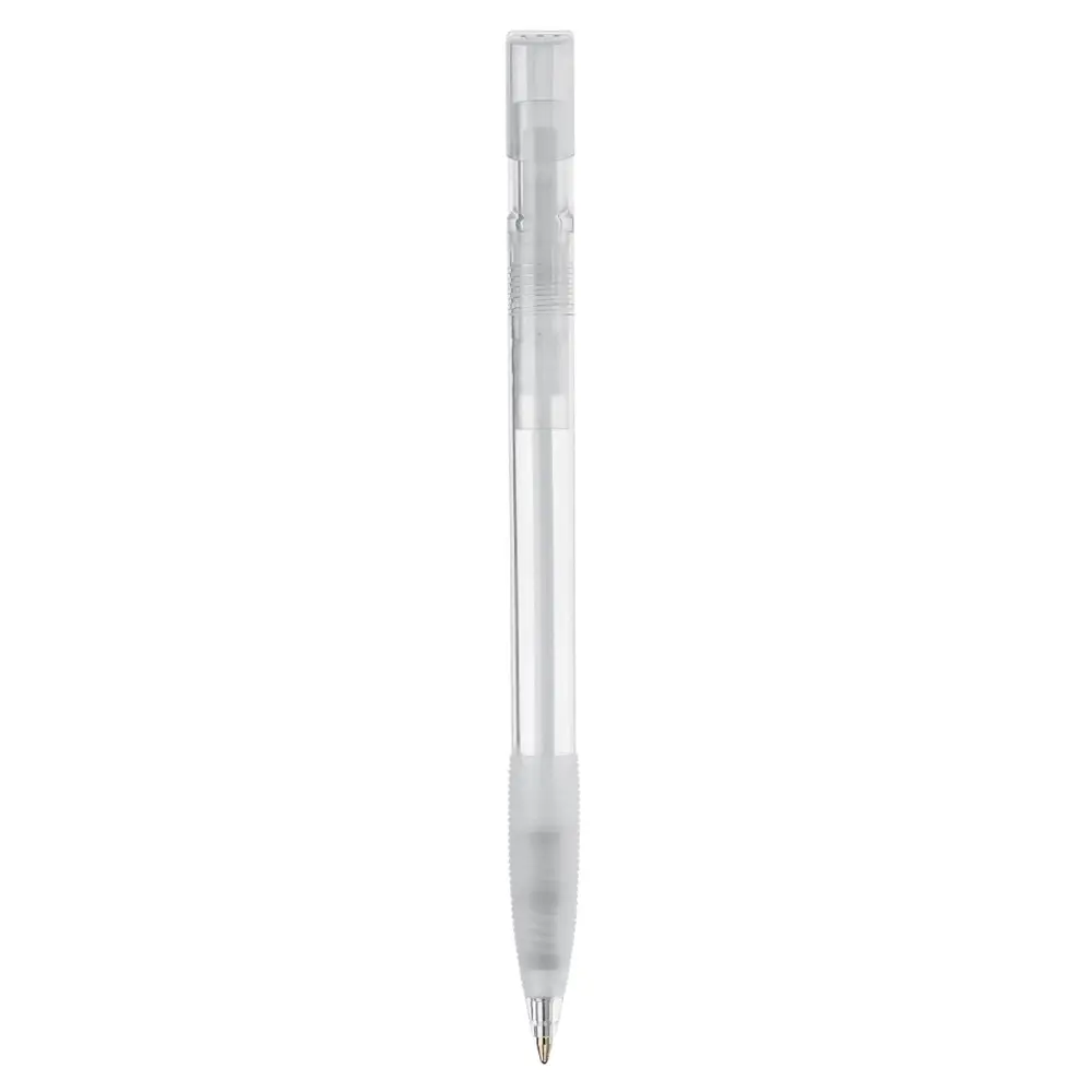 De transparante behuizing met rubberen grip zorgt voor een comfortabele en stevige houvast, terwijl de diameter van 10 mm een ergonomische ervaring garandeert. Personaliseer deze pen eenvoudig met uw logo via bedrukking, perfect voor marketingprofessionals en eventorganisatoren om uw merk zichtbaar te maken bij klanten.