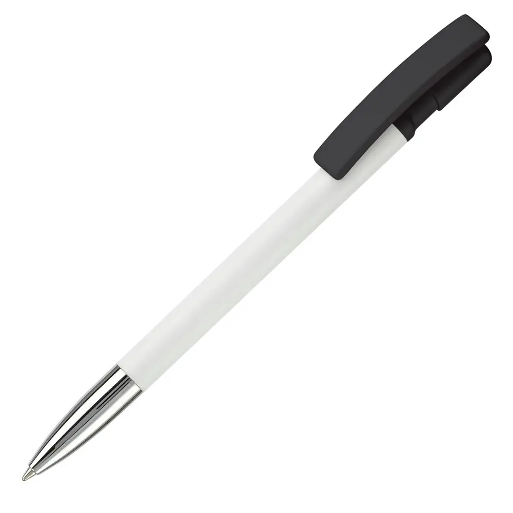 Ontdek de balpen Nash met glanzend metalen punt, geproduceerd in Duitsland voor optimale kwaliteit. Deze pen biedt een blauwschrijvende X20-vulling die tot 2,5 km schrijfplezier garandeert, ideaal voor langdurig gebruik. De hardcolour finish en metalen tip zorgen voor een robuuste en professionele uitstraling.