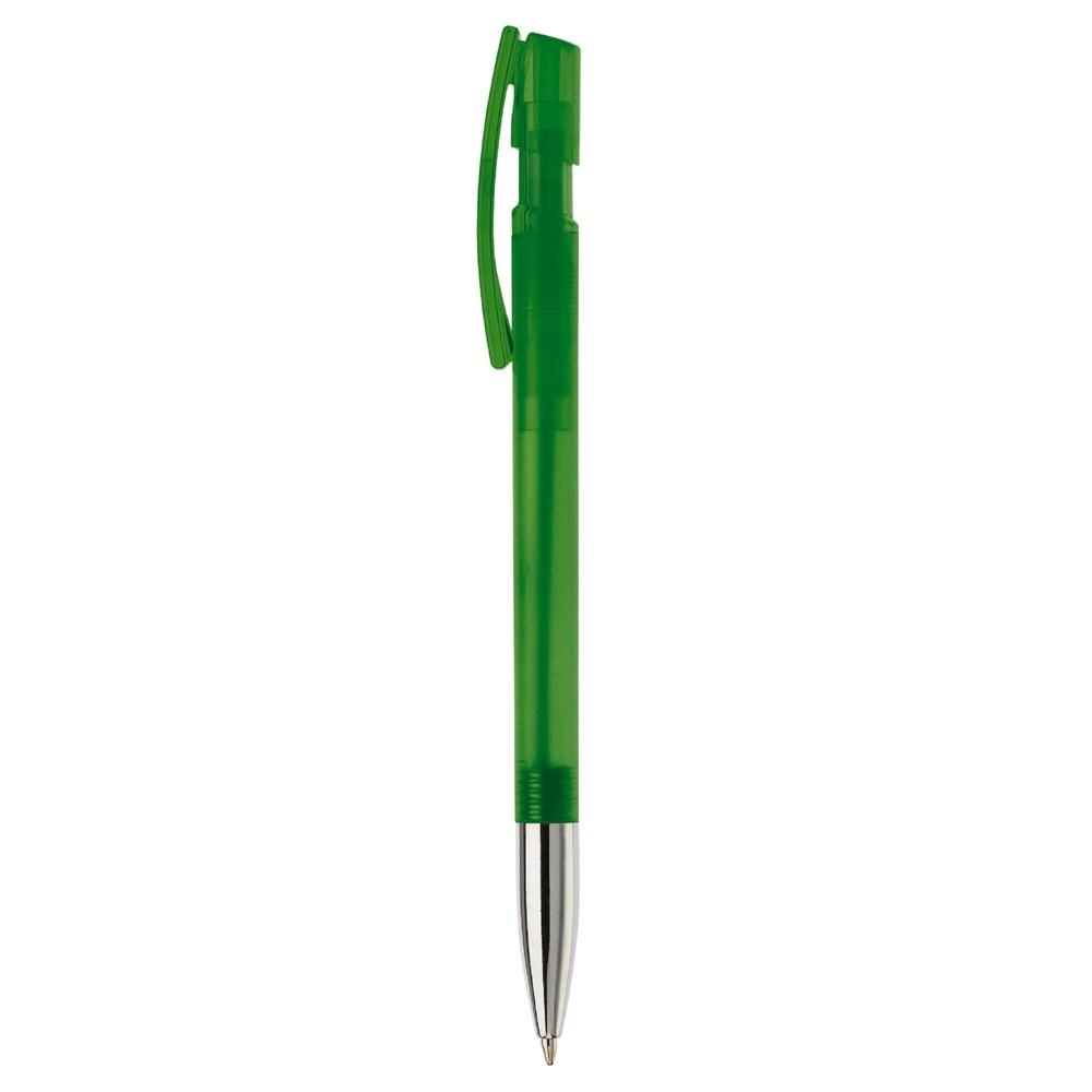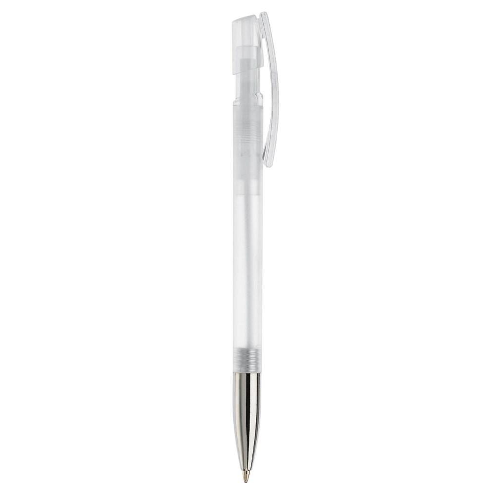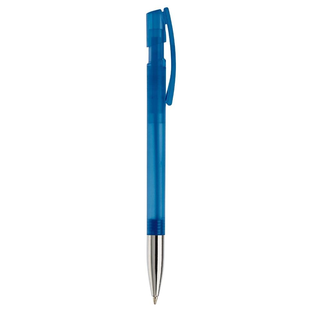 Toppoint design balpen, geproduceerd in Duitsland. Deze pen bevat een blauwschrijvende X20 vulling voor 2,5km schrijfplezier. Transparante pen met een metalen tip.