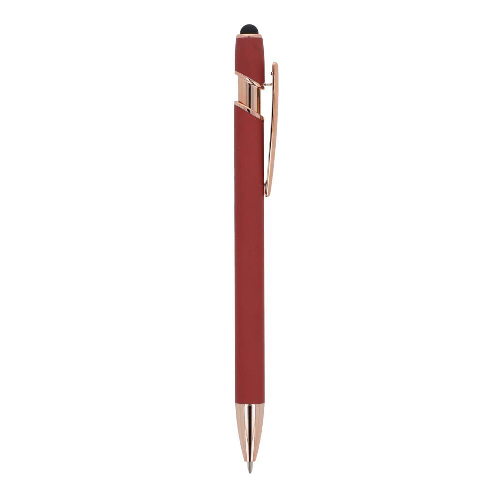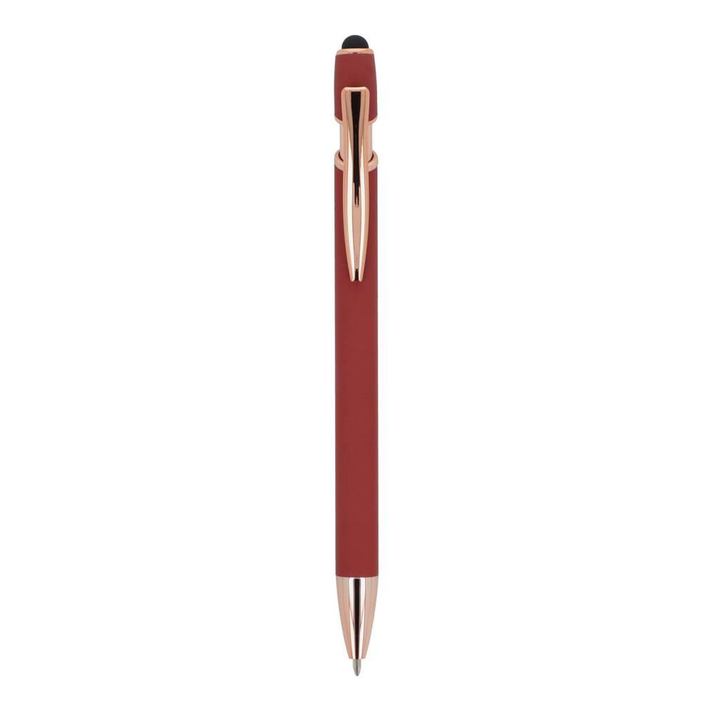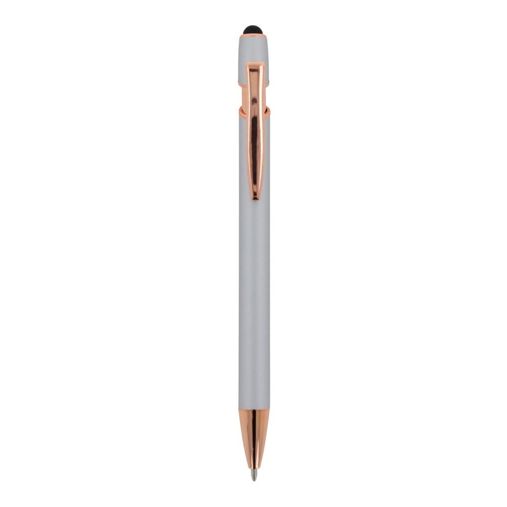 Ontdek deze elegante aluminium balpen met zachte soft-touch afwerking voor een luxueus schrijfgevoel. De stylus aan de top laat je naadloos overschakelen naar je smartphone of tablet, terwijl de solide metalen clip zorgt voor stevige bevestiging. Met een diameter van 10 mm ligt hij perfect in de hand.