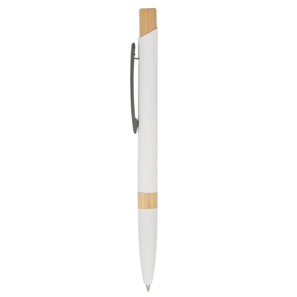 Deze balpen is vervaardigd uit gerecycled materiaal, wat hem tot een bewuste keuze maakt voor ondernemingen die groene initiatieven ondersteunen. Met de optie voor logobedrukking wordt hij een uniek relatiegeschenk dat uw boodschap draagt. De bamboe accenten voegen een natuurlijk element toe, passend bij moderne branding. Bestel in bulk voor optimale impact op uw promoties.
